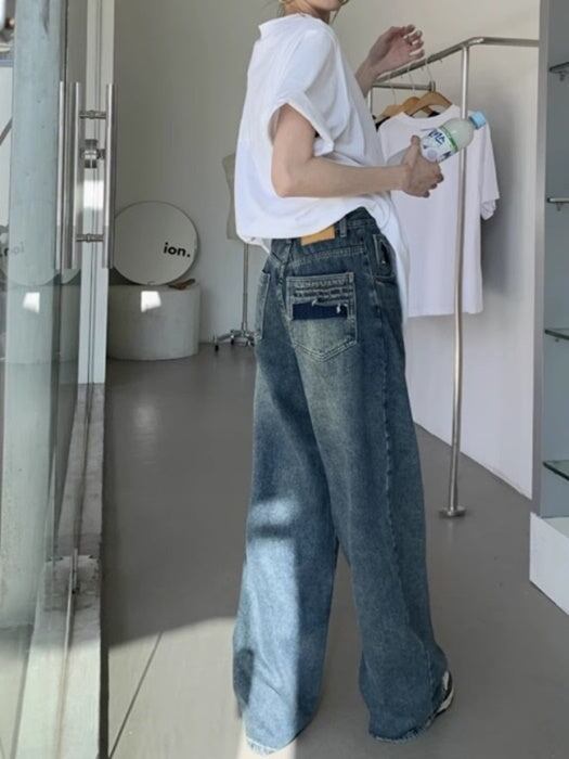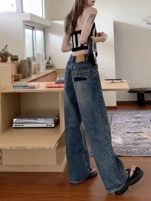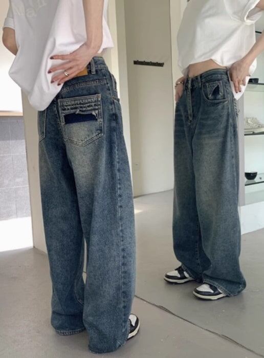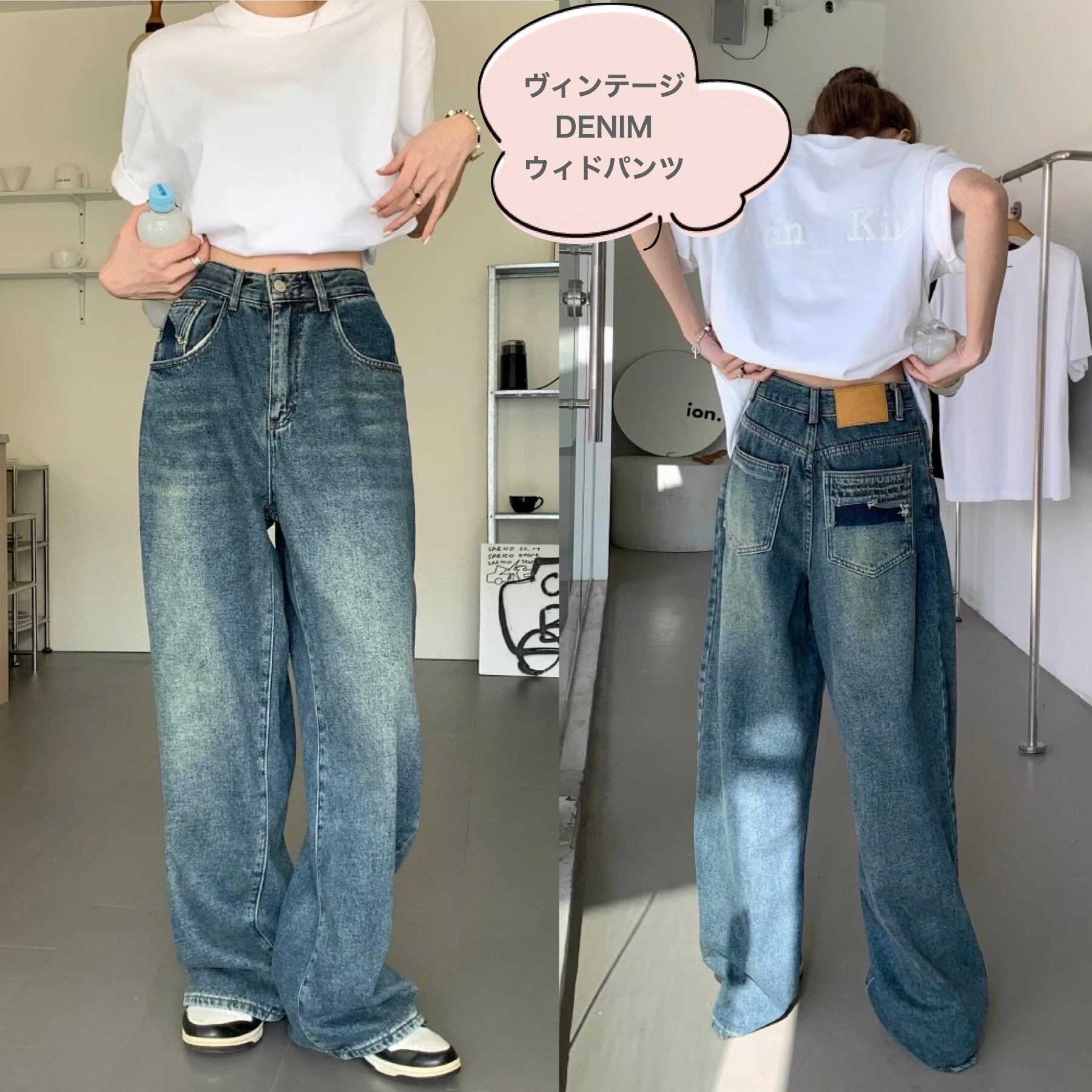 ヴィンテージ デニム ワイドパンツ レディース 韓国 ファッション メンズライク 大人カジュアル デニムパンツ