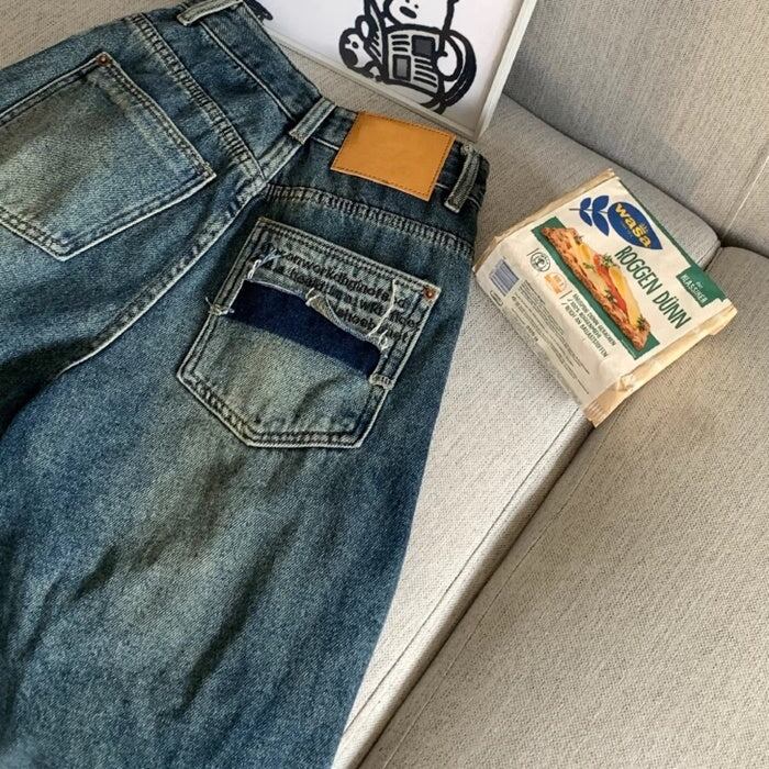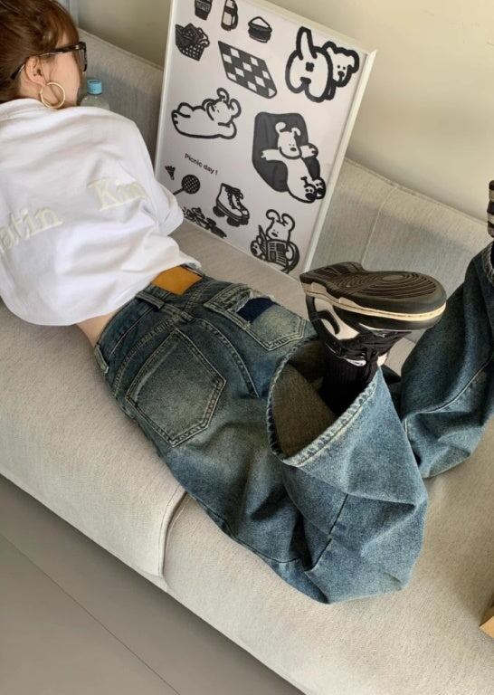 デニムパンツ ダメージ加工 レディース 韓国 ファッション 太めジーンズ メンズライク おしゃれ 秋冬 パンツ 大人カジュアル