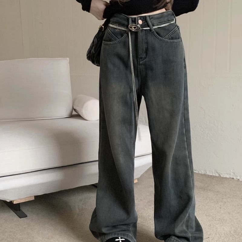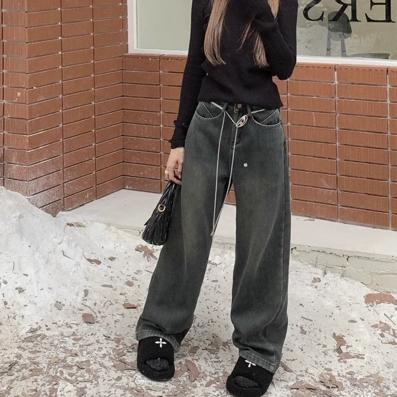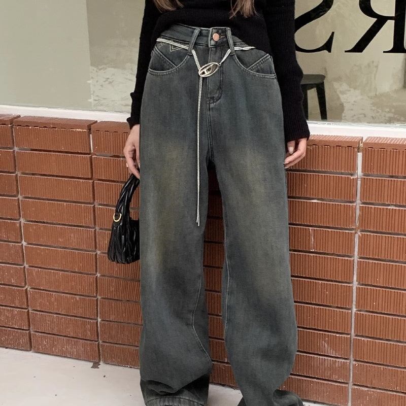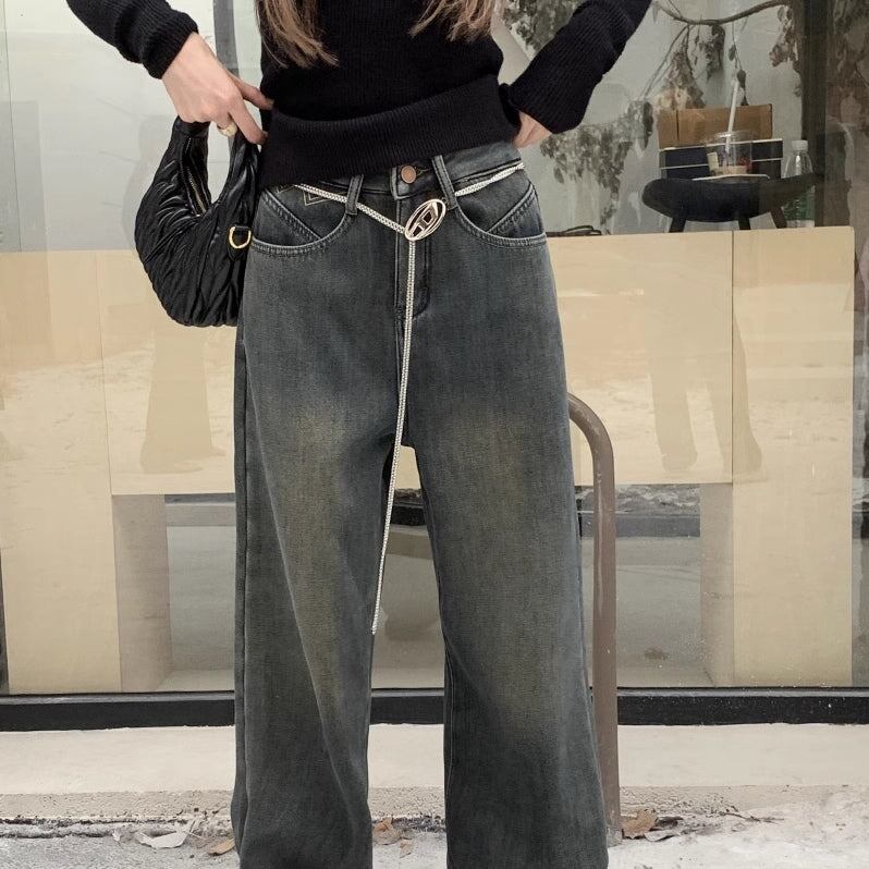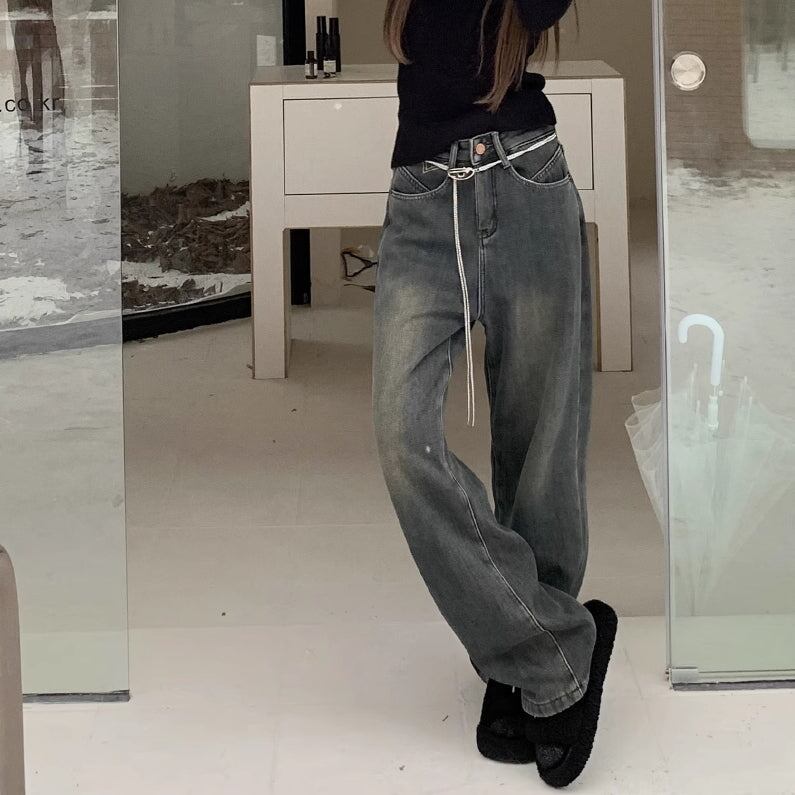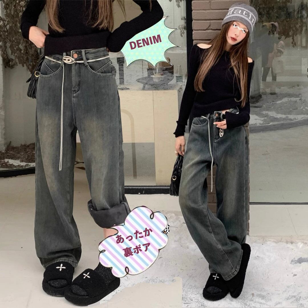 冬用 デニムパンツ レディース 裏ボア あったか ジーンズ 韓国 ファッション 冬デニム 厚手 防寒 厚手 ワイドパンツ アッシュグレー