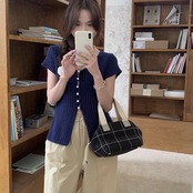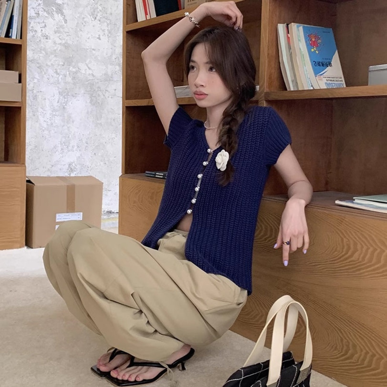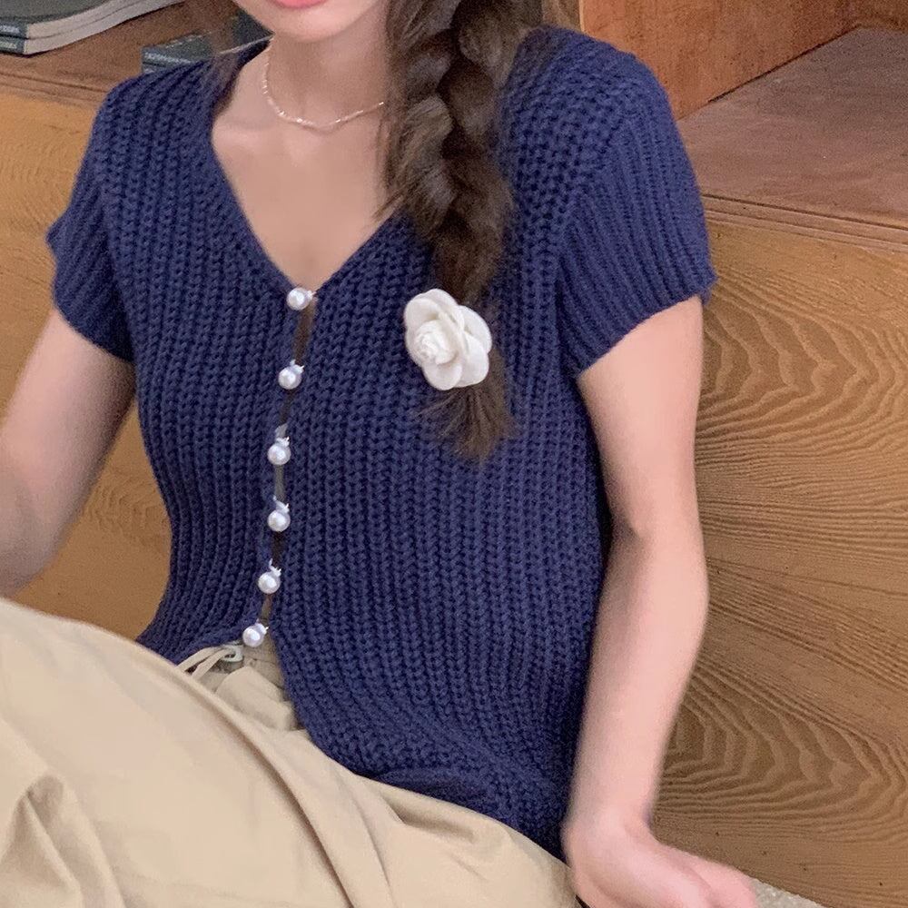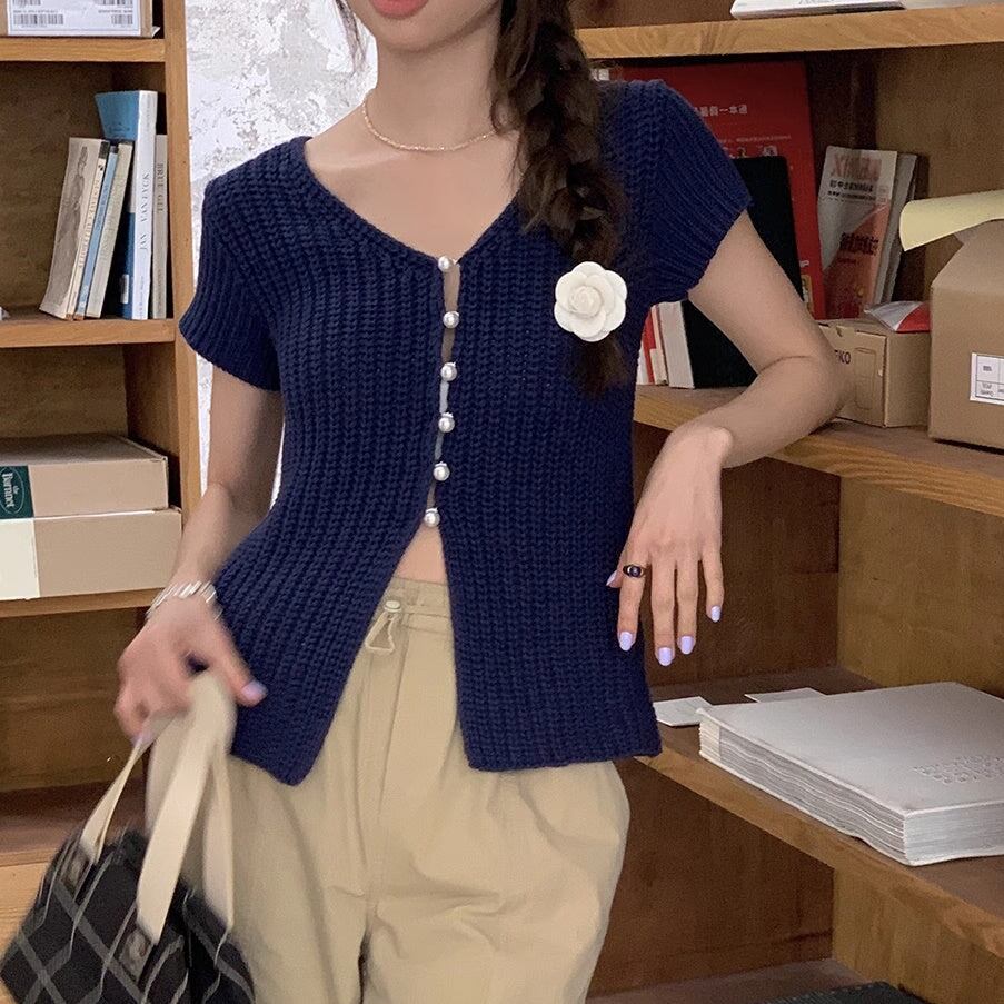 半袖 カーディガン レディース 夏 韓国 ファッション パールボタン サマー ニット ボレロ タイト ボタンニット