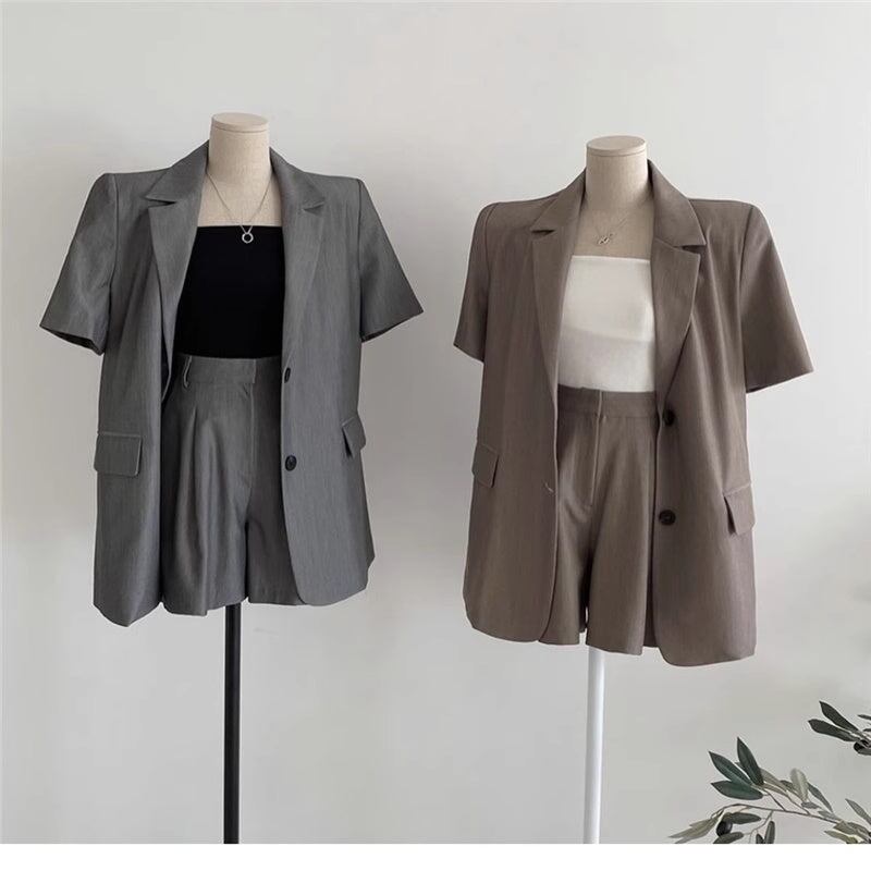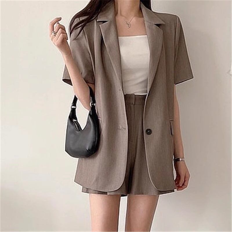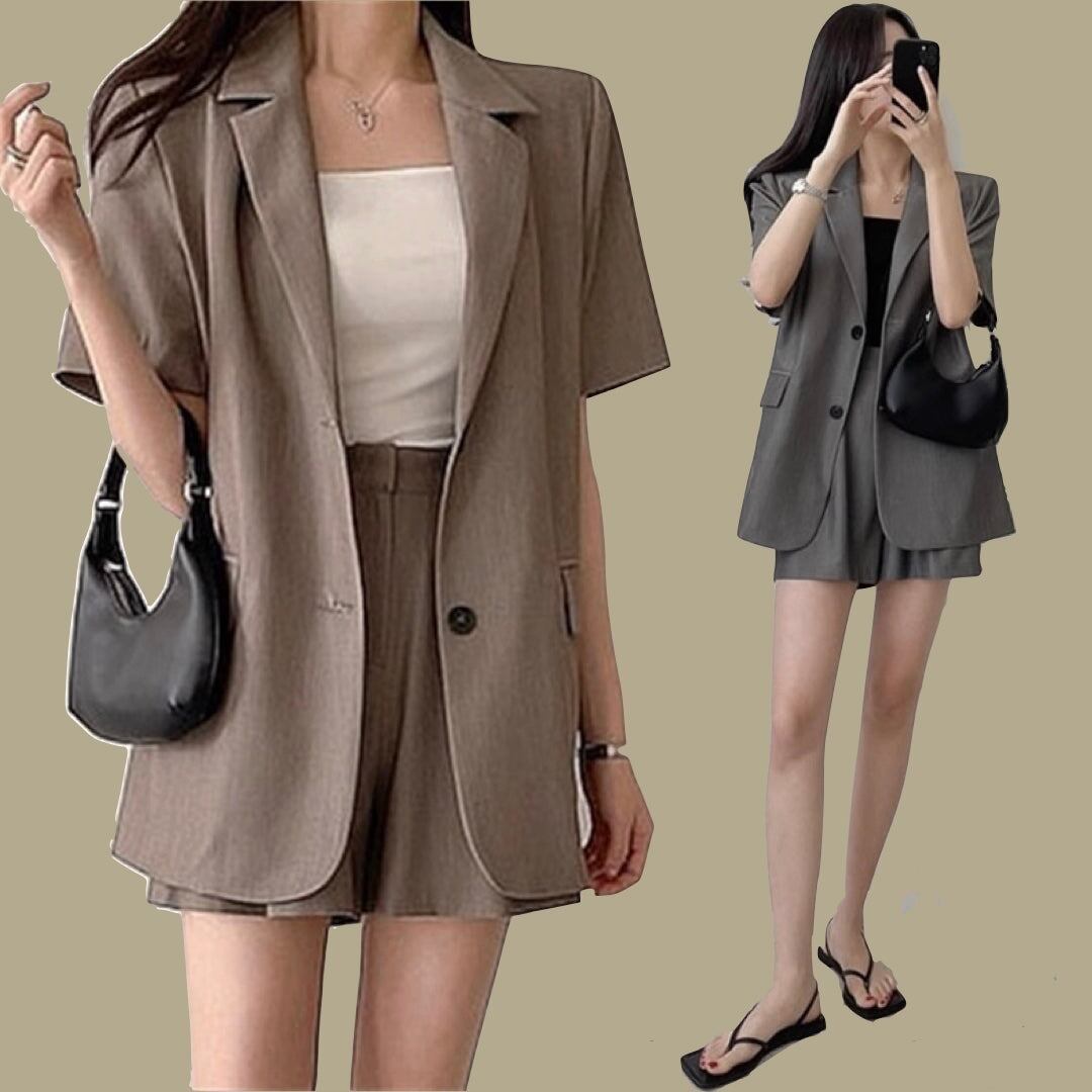 半袖 ジャケット セットアップ レディース スーツ ハーフパンツ 上下セット 韓国 ファッション ショートパンツ テーラードジャケット きれいめ