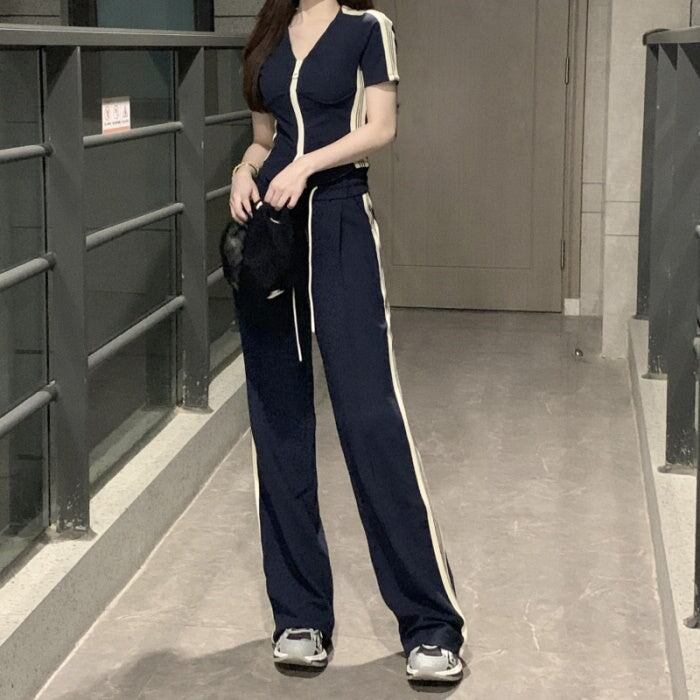 夏 カジュアル ジャージ セットアップ レディース 韓国 ファッション サイドラインパンツ 夏 スポーツ タイト スポーツウェア