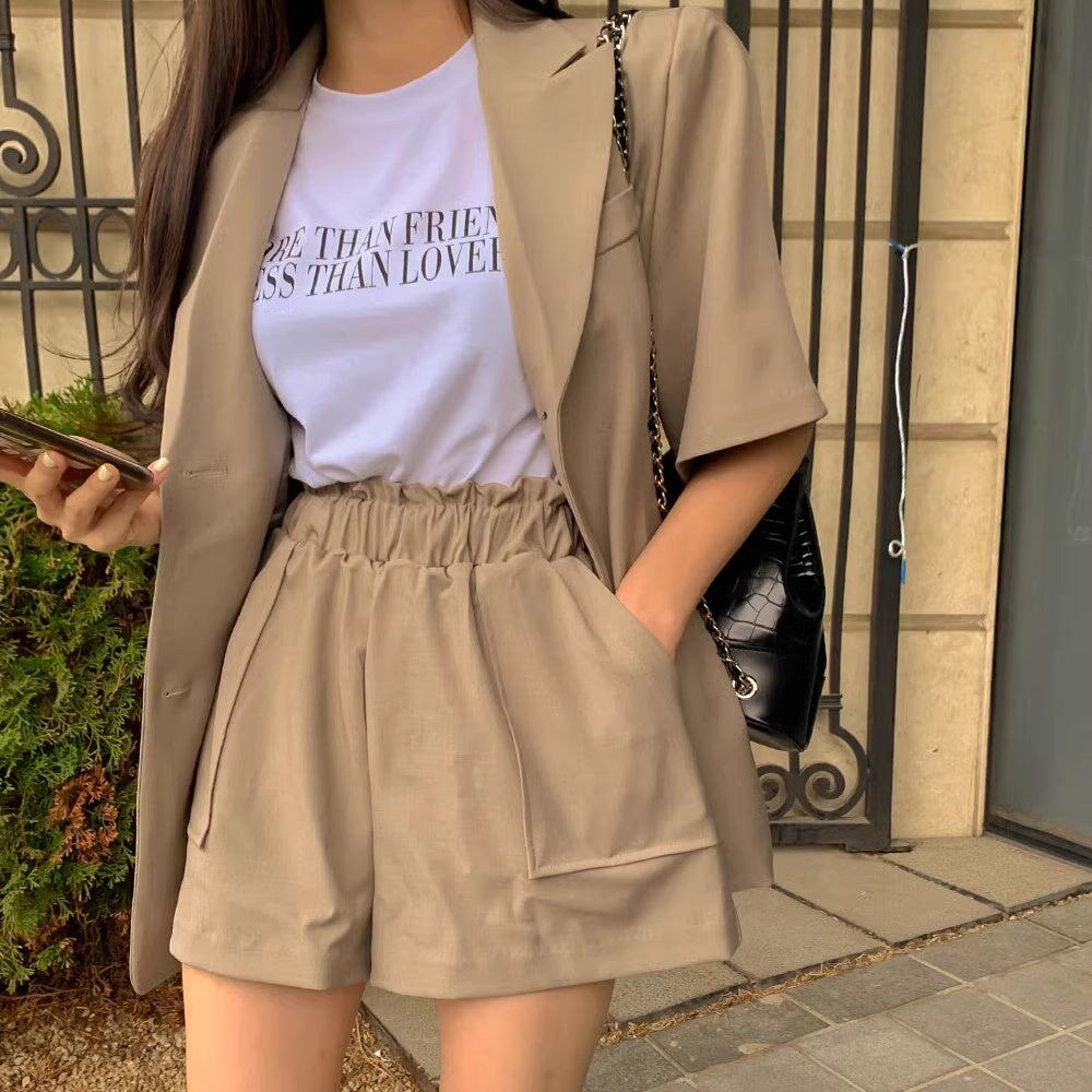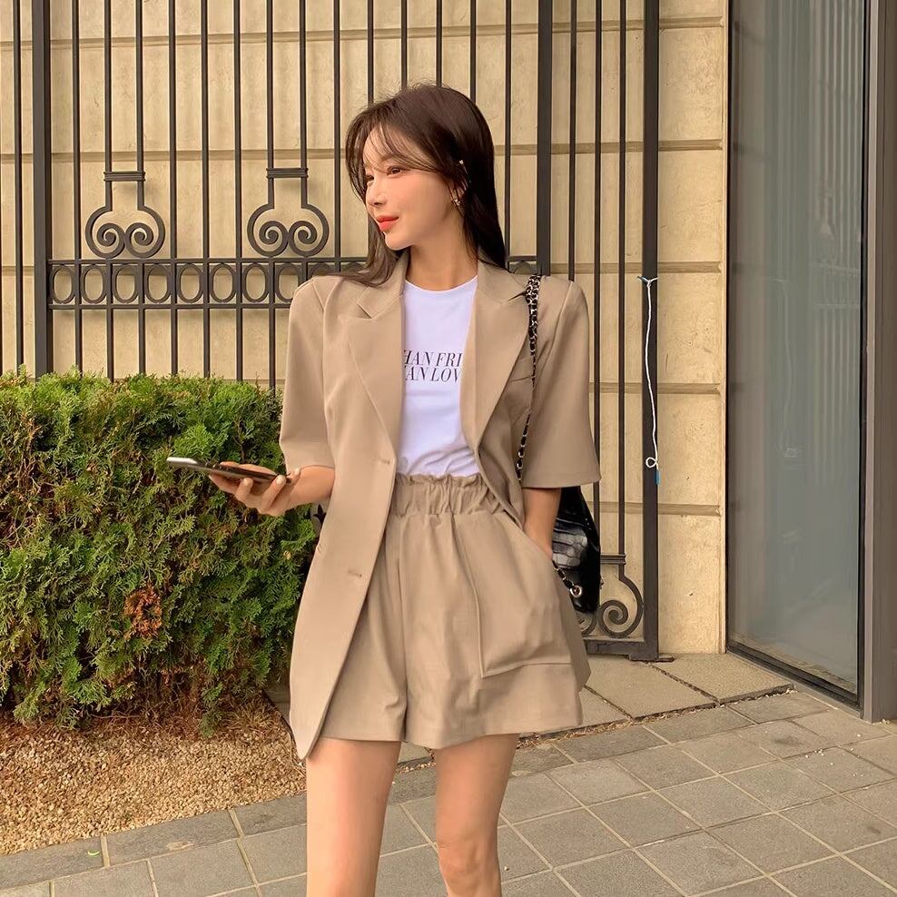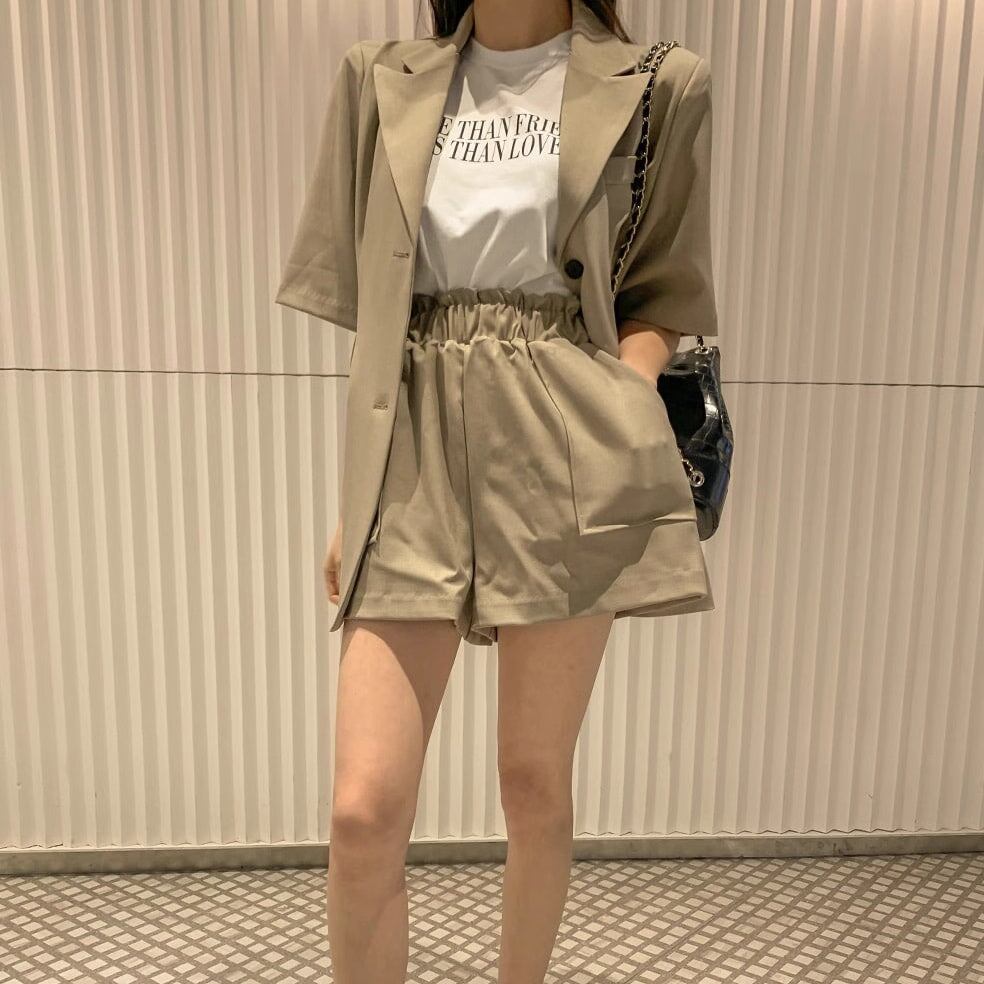 夏 セットアップ レディース スーツ 韓国 ファッション 半袖 ジャケット ショートパンツ