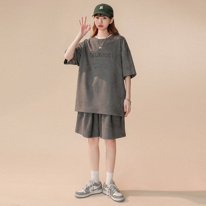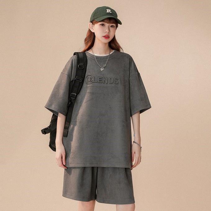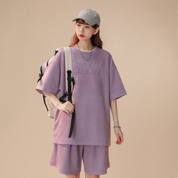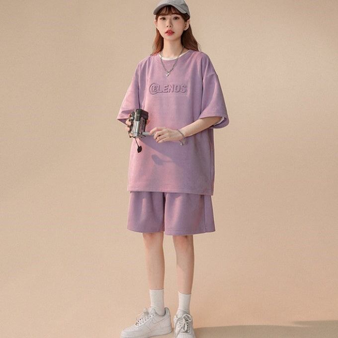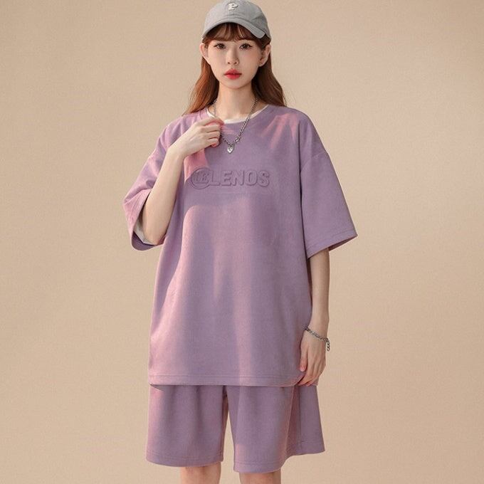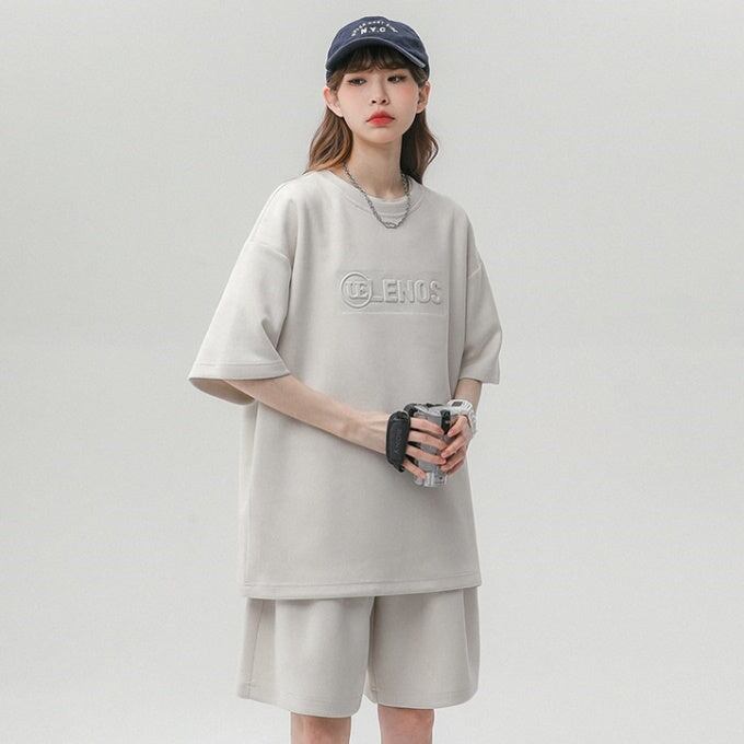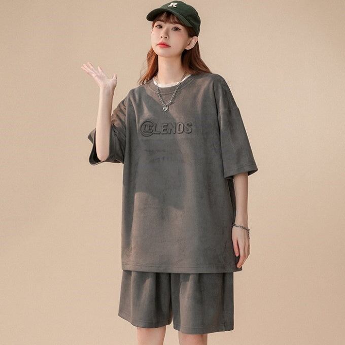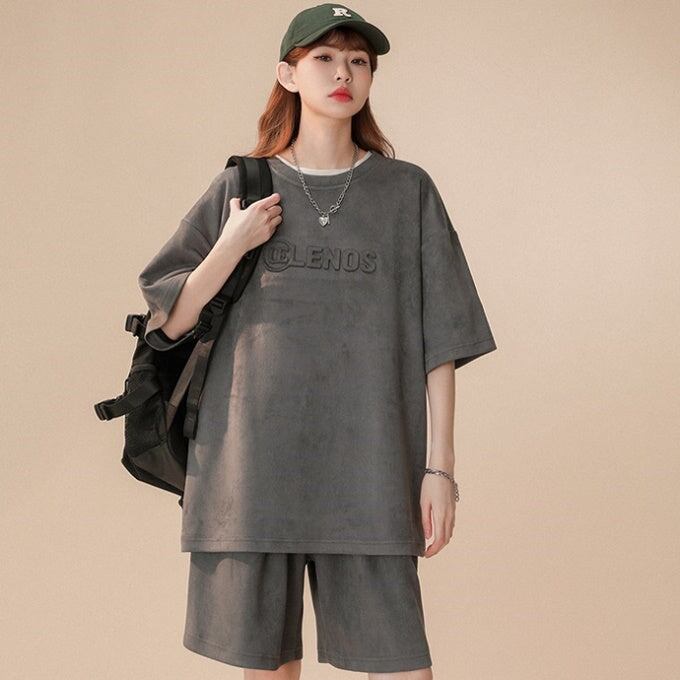 セットアップ 夏上下 オーバーサイズ レディース 韓国 ファッション ビッグシルエット ロゴTシャツ ショートパンツ ラウンジ 立体ロゴ