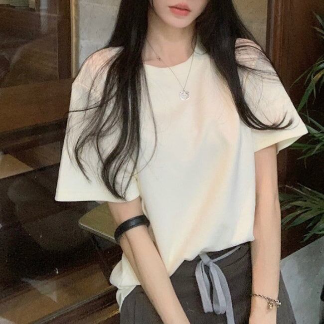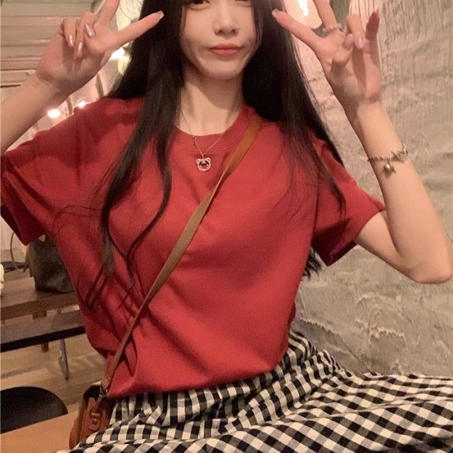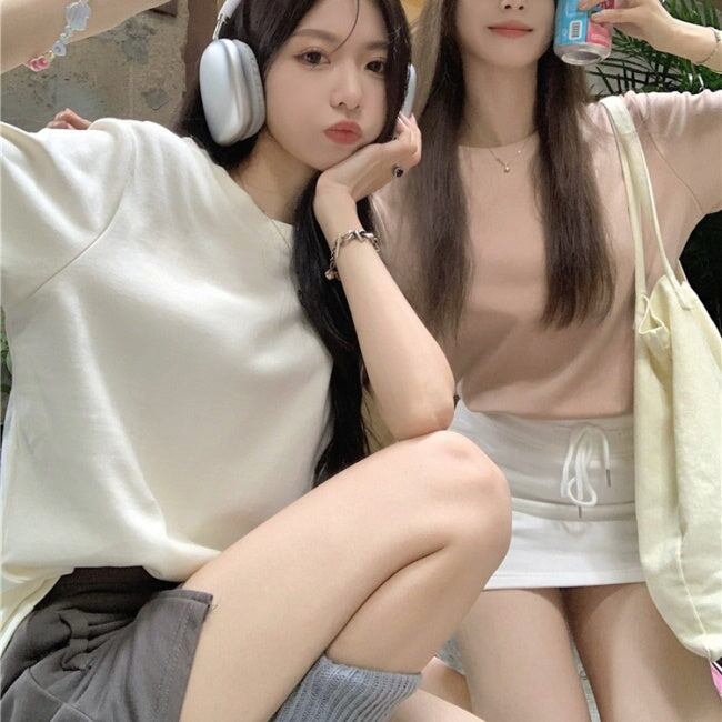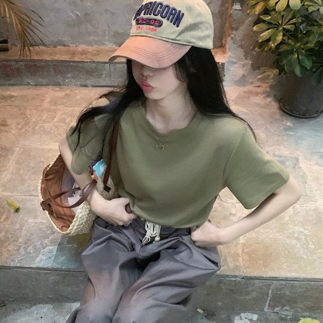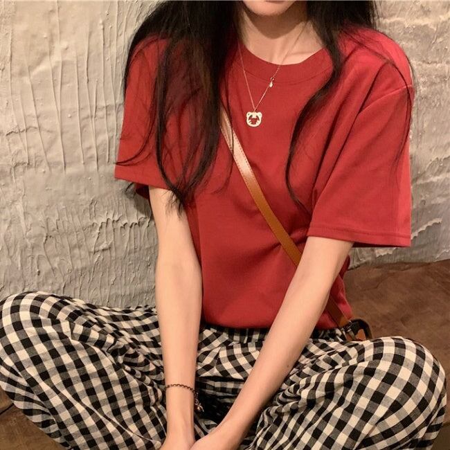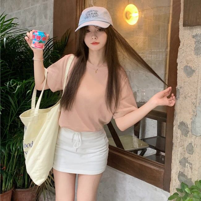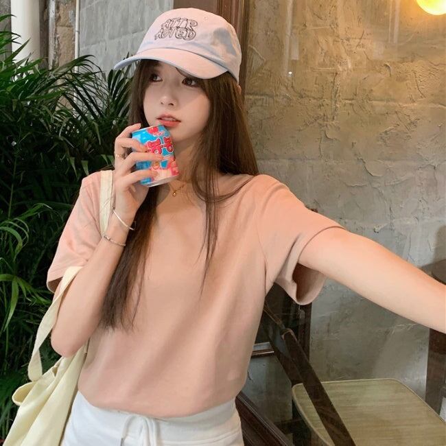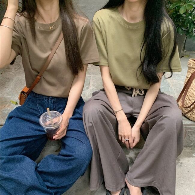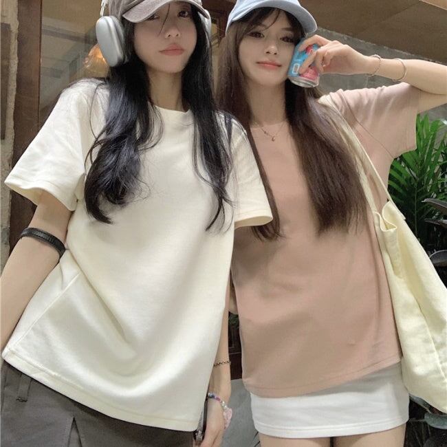 無地 Tシャツ レディース 韓国 ファッション シンプル プレーン T 夏トップス