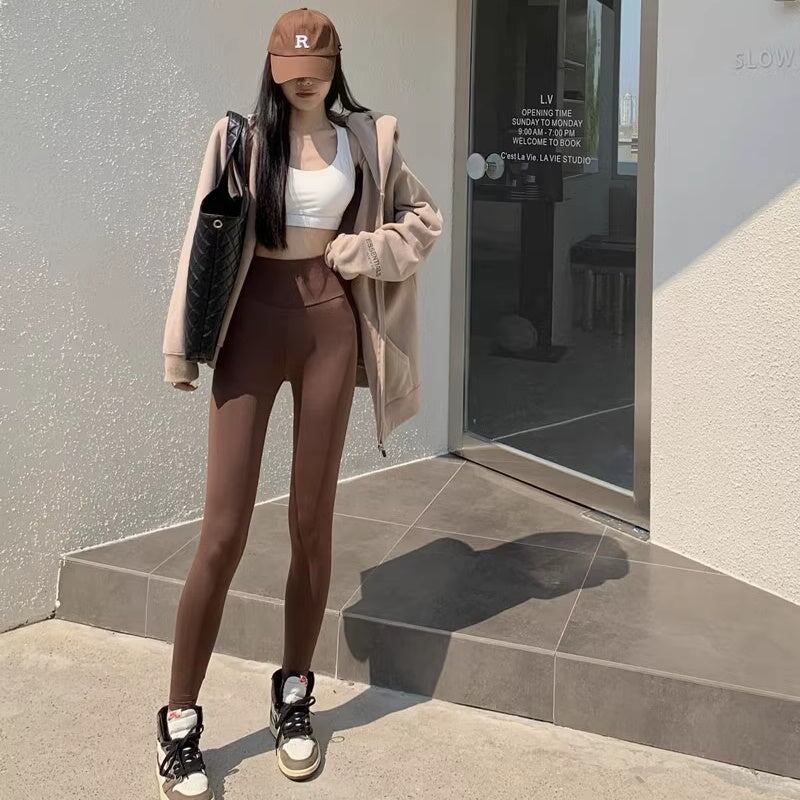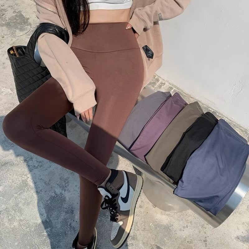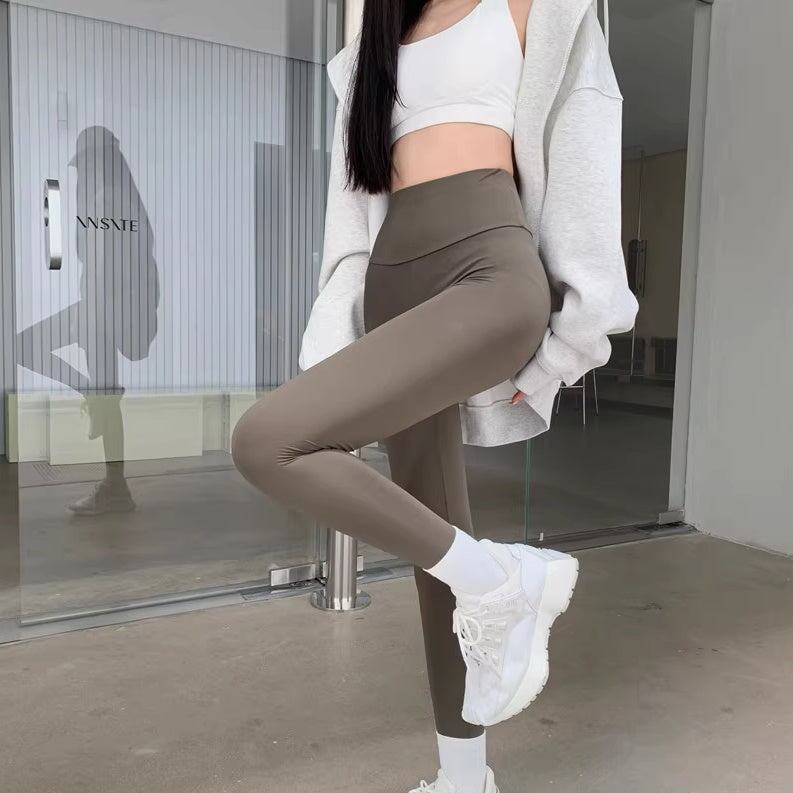 秋冬 レギンスパンツ レディース 韓国 ファッション ストレッチ タイトパンツ ニュアンスカラー レイヤード スポーツパンツ