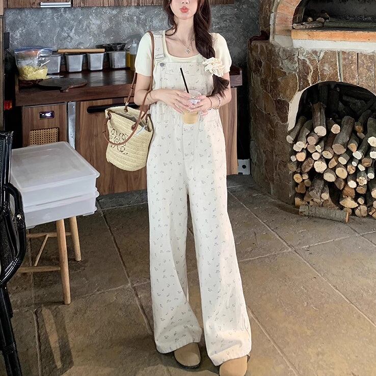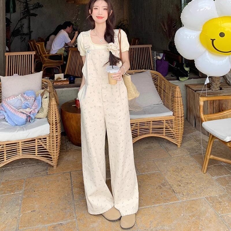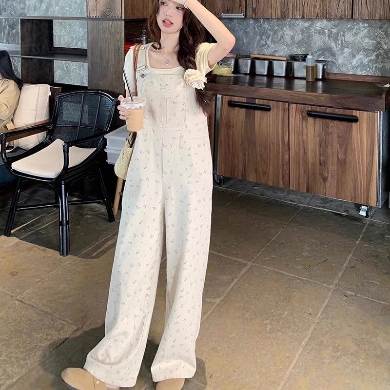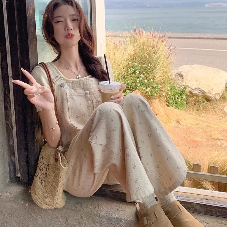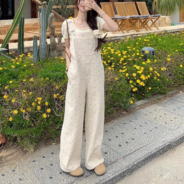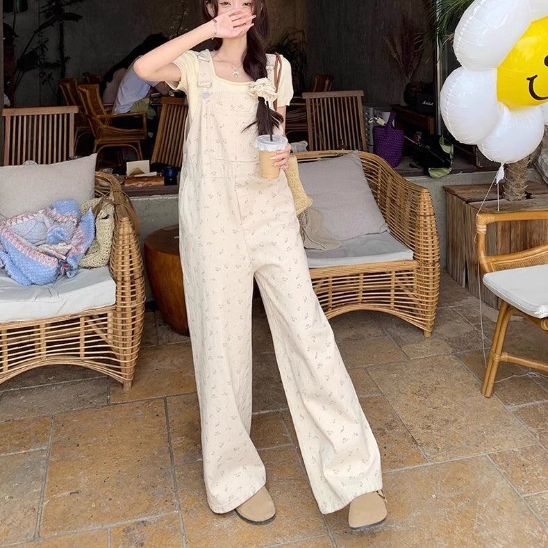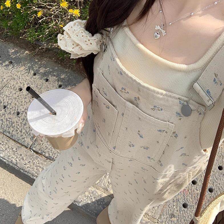 オーバーオール サロペットパンツ レディース 韓国 ファッション 花柄 サスペンダー カジュアルパンツ デニム プリント ガーりー