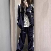 ジャージセットアップ レディース 韓国 ファッション シャカパン トラックトップ サイドライン ウィンドブレーカー セット上下