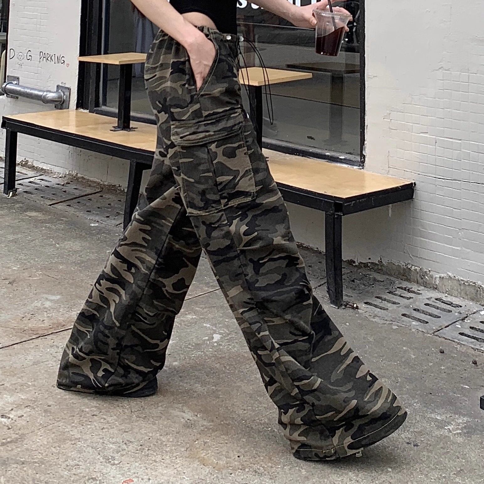 迷彩 ワイド カーゴパンツ レディース 韓国 ファッション カモフラージュワイドパンツ
