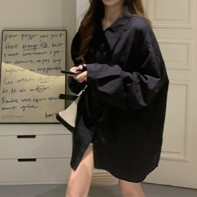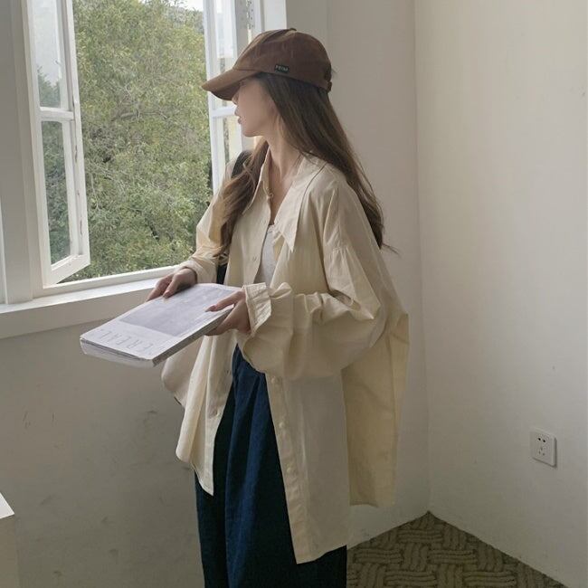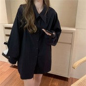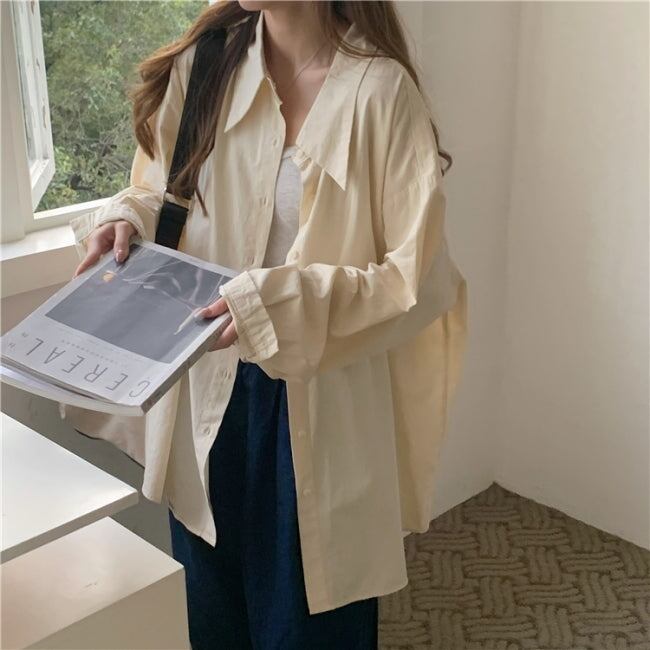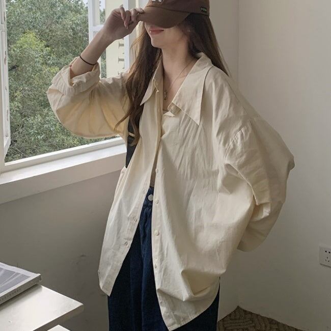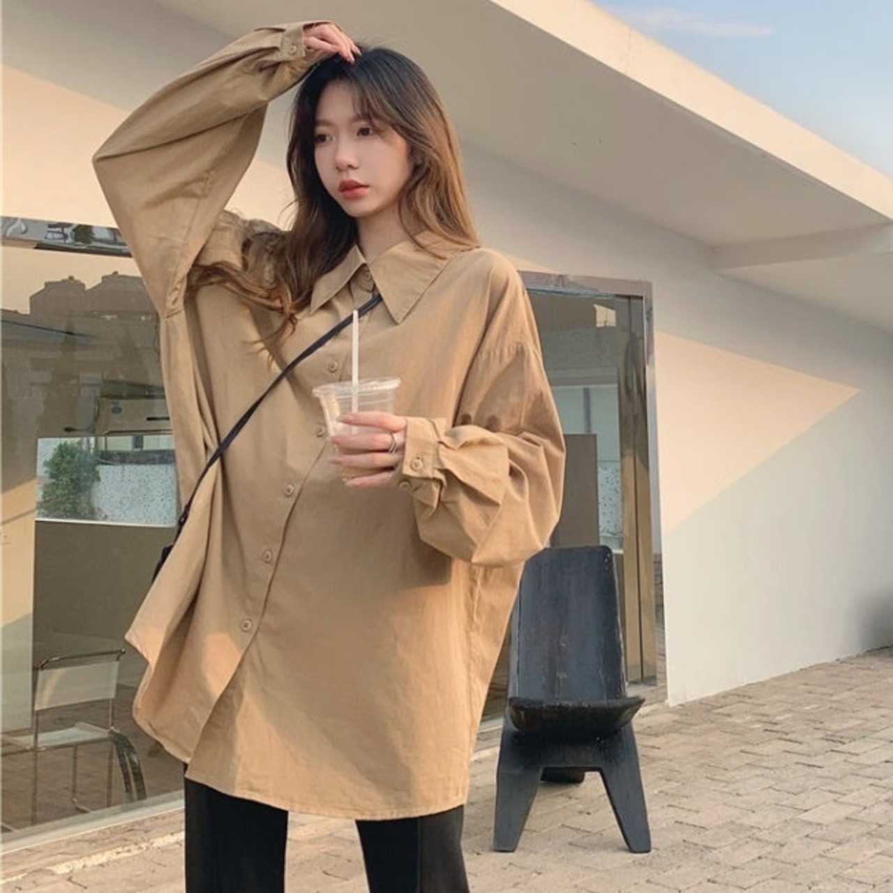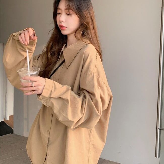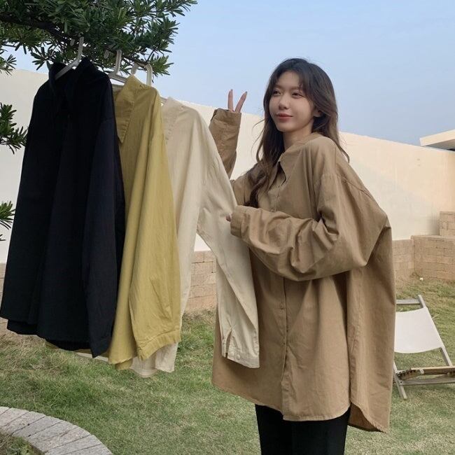 長袖 オーバーシャツ レディース 韓国 ファッション ビッグシルエット ブラウス カバーオール 春 羽織シャツ ボーイフレンド 無地シャツ