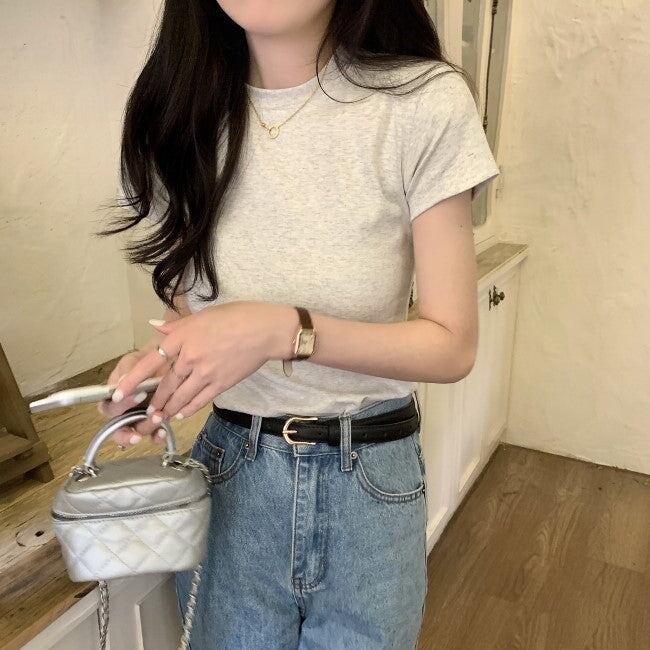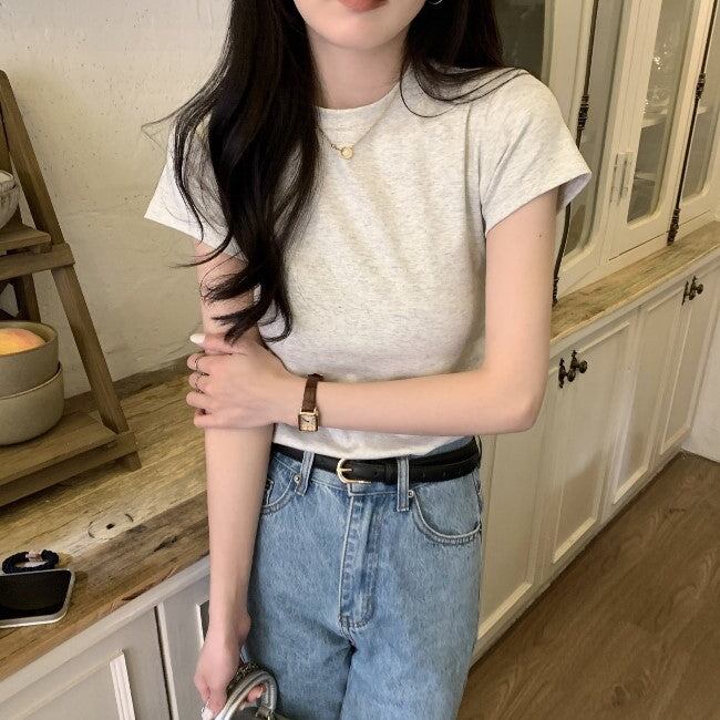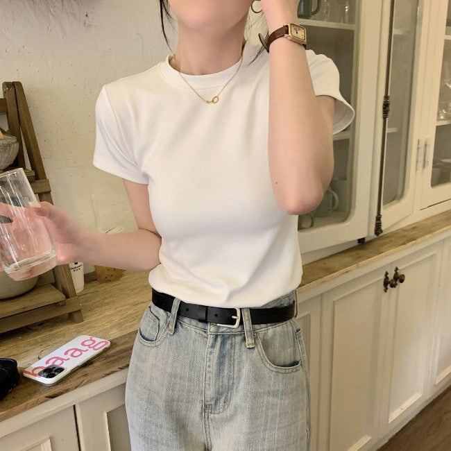 Tシャツレディース 韓国 ファッション 夏トップス ストレッチ コットン T ミニマム Y2K トレンド おしゃれ 半袖