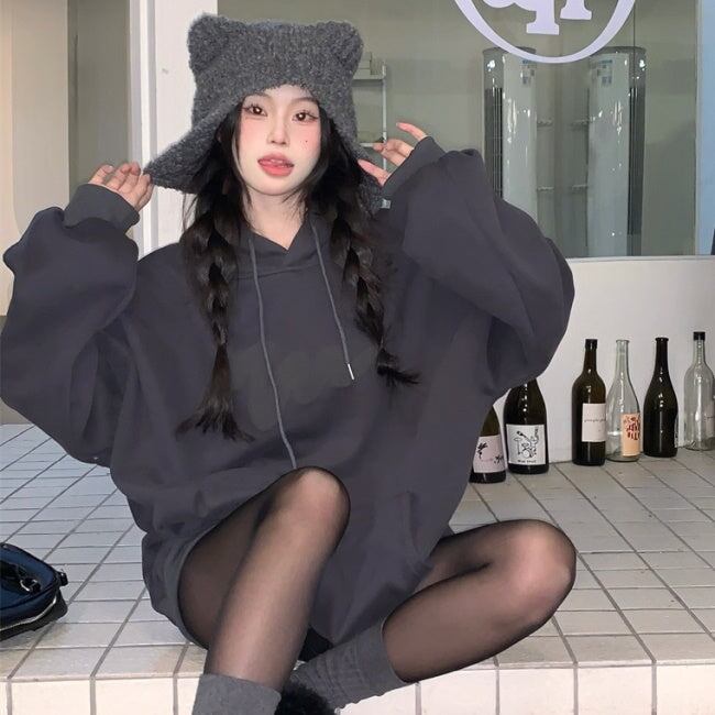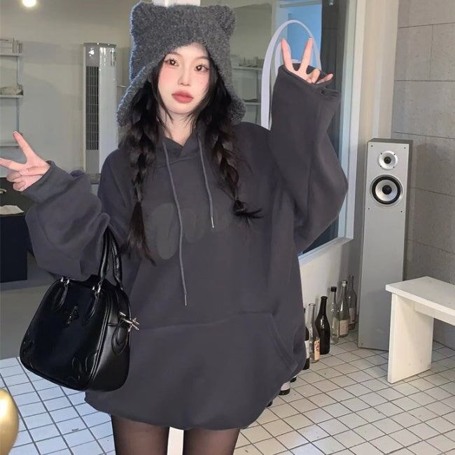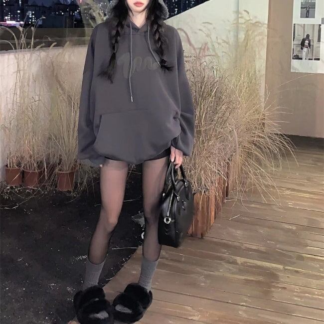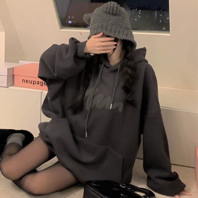韓国 ロゴ パーカー プルオーバー レディース オーバーサイズ スウェット パーカー グレー