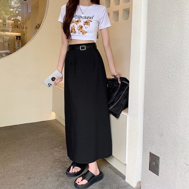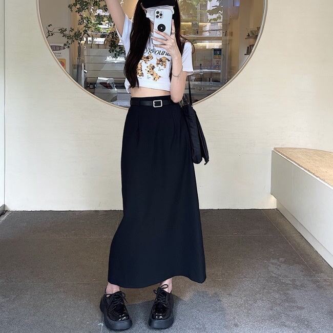 黒 ロングスカート 韓国 ファッション レディース タイト ナロースカート 春夏