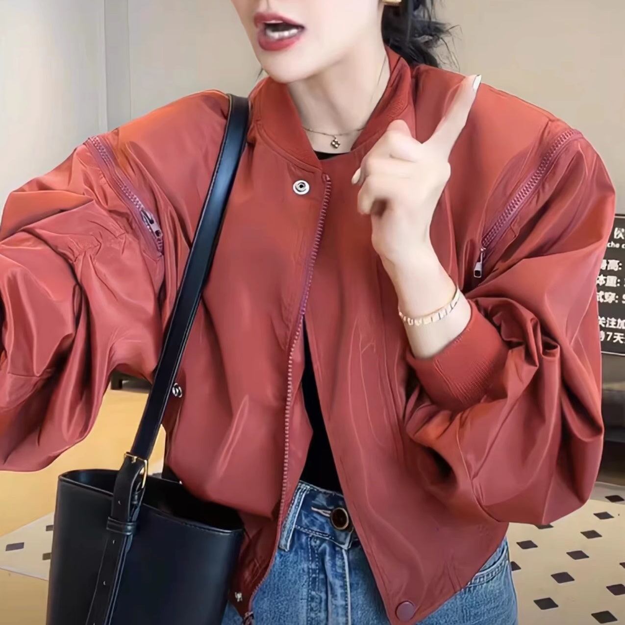 クロップドアウター レディース 韓国 ファッション ジップ袖 ギャザー袖 ショート丈 肩ジッパー MA1