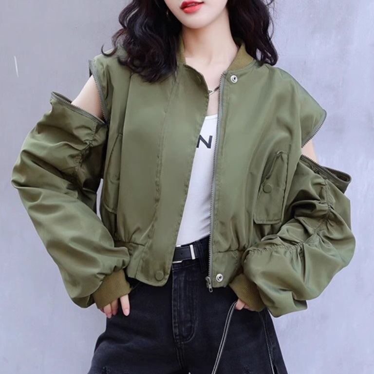 MA-1 ジャケット レディース 韓国 ファッション クロップ ジップ カットホール 2WAY アウター