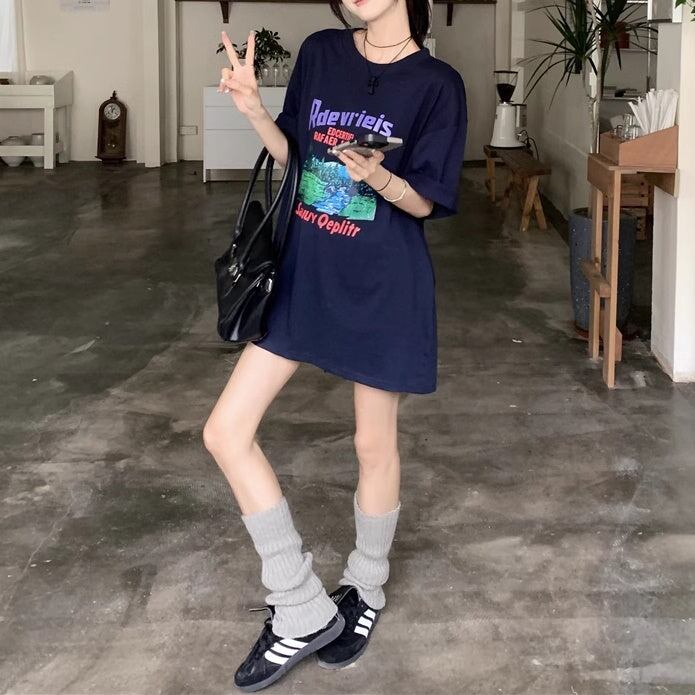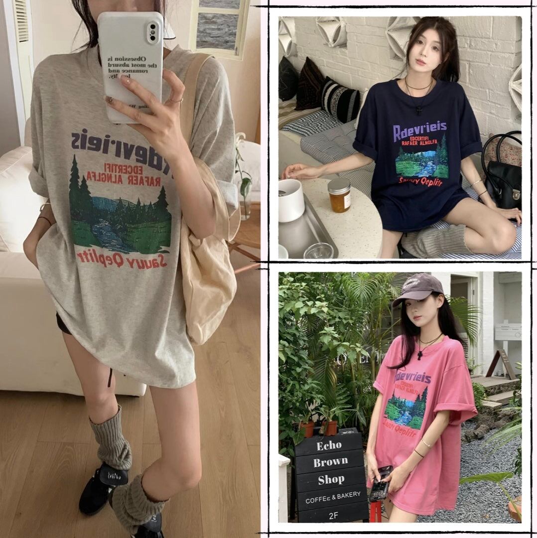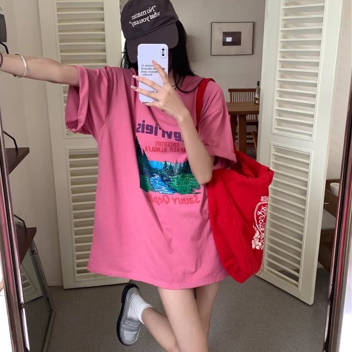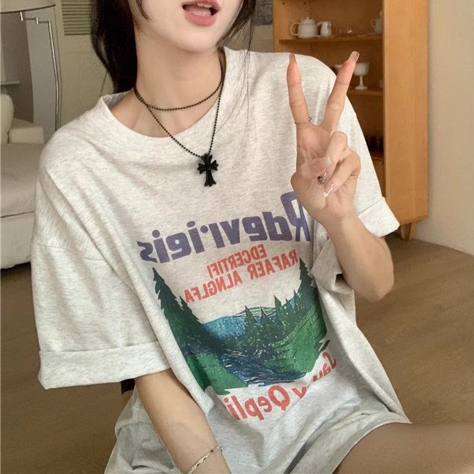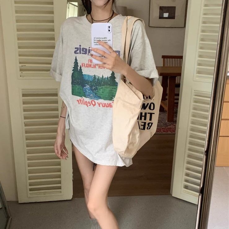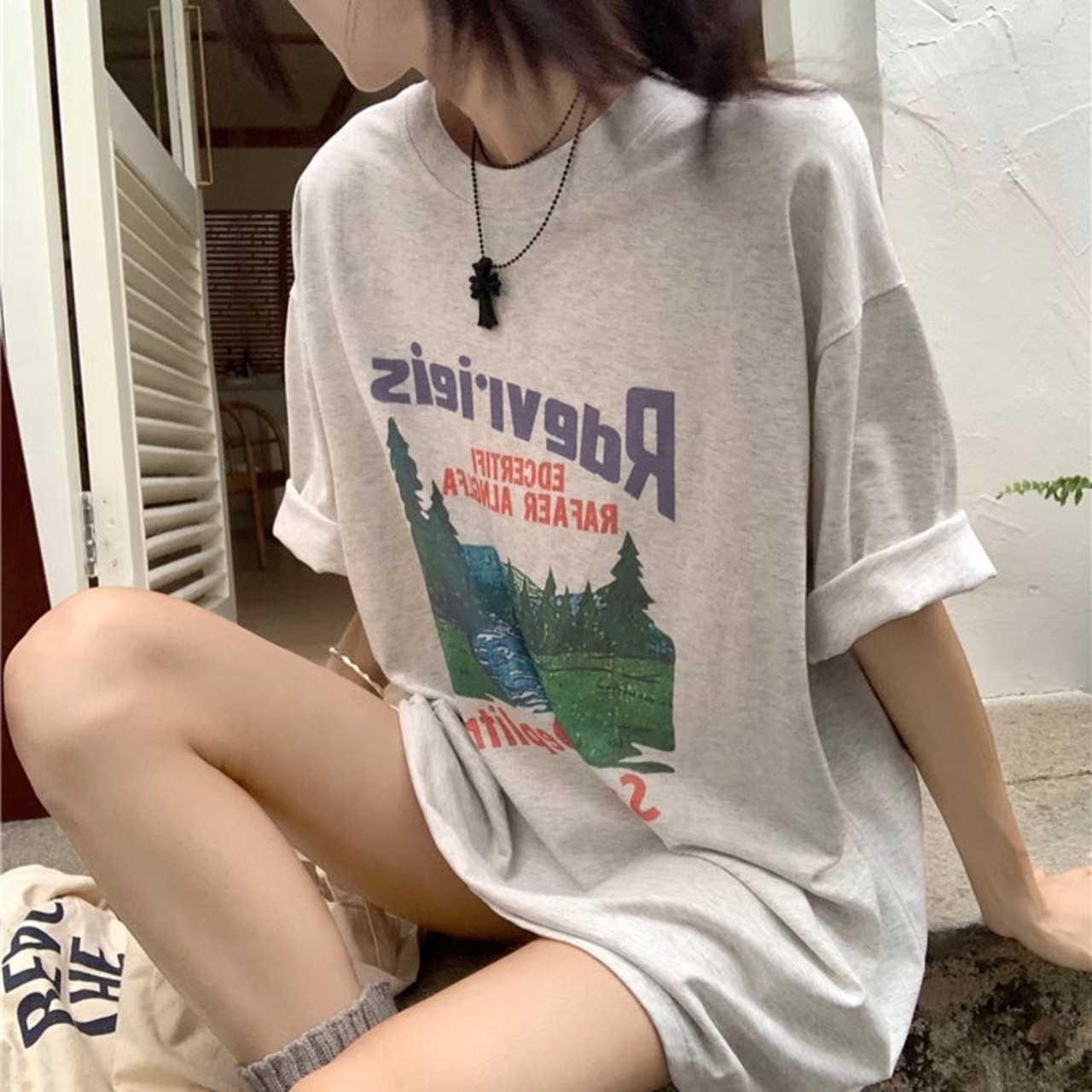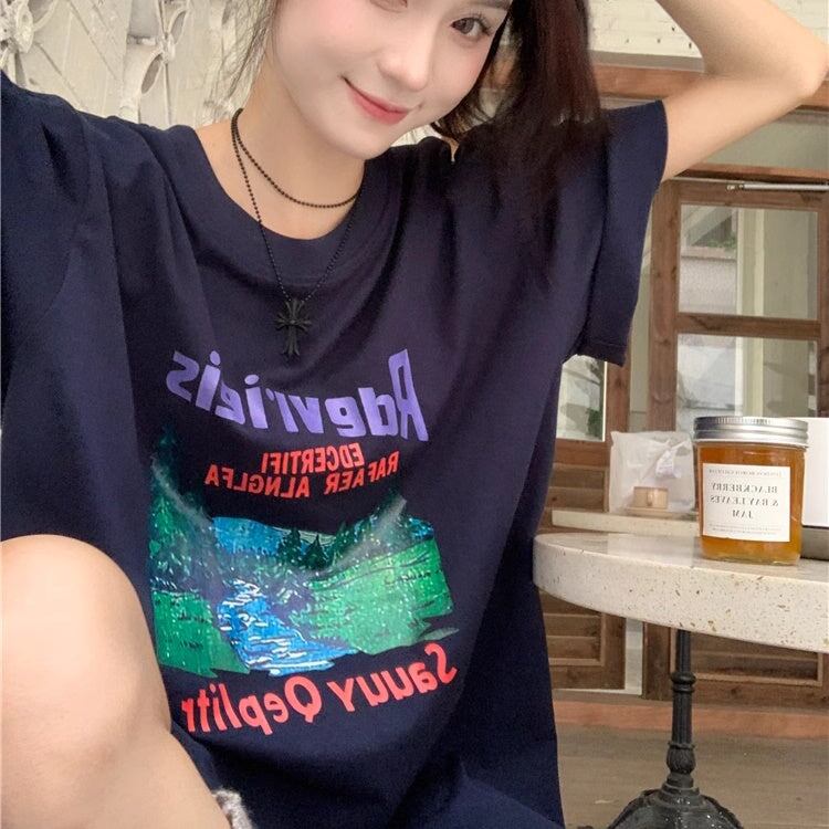 Tシャツ レディース プリント グラフィック T 韓国 ファッション 半袖 夏トップス ビッグシルエット