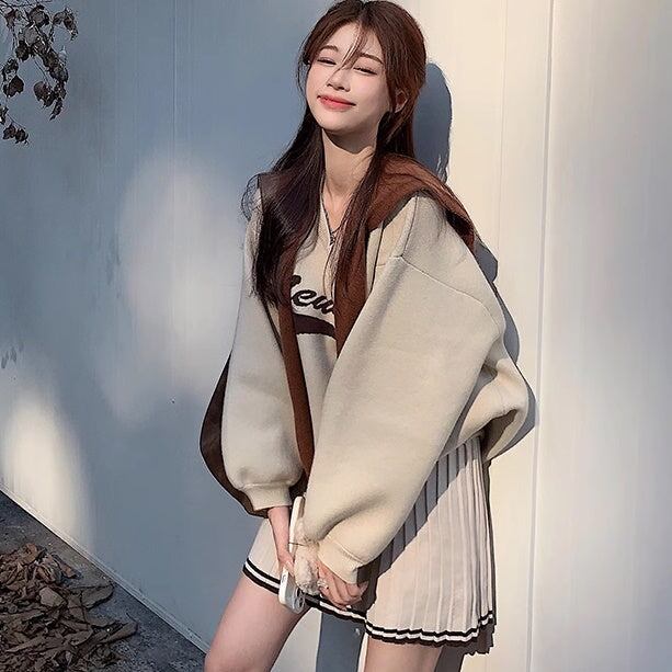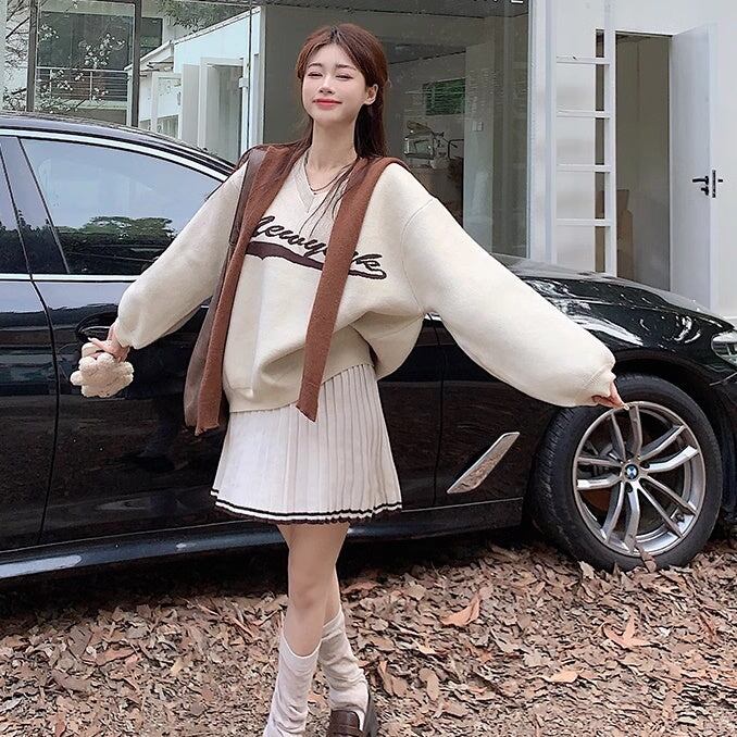 スウェットトレーナー レディース 韓国 ファッション Vネック ロゴプリント 冬トップス プレッピー 学生コーデ