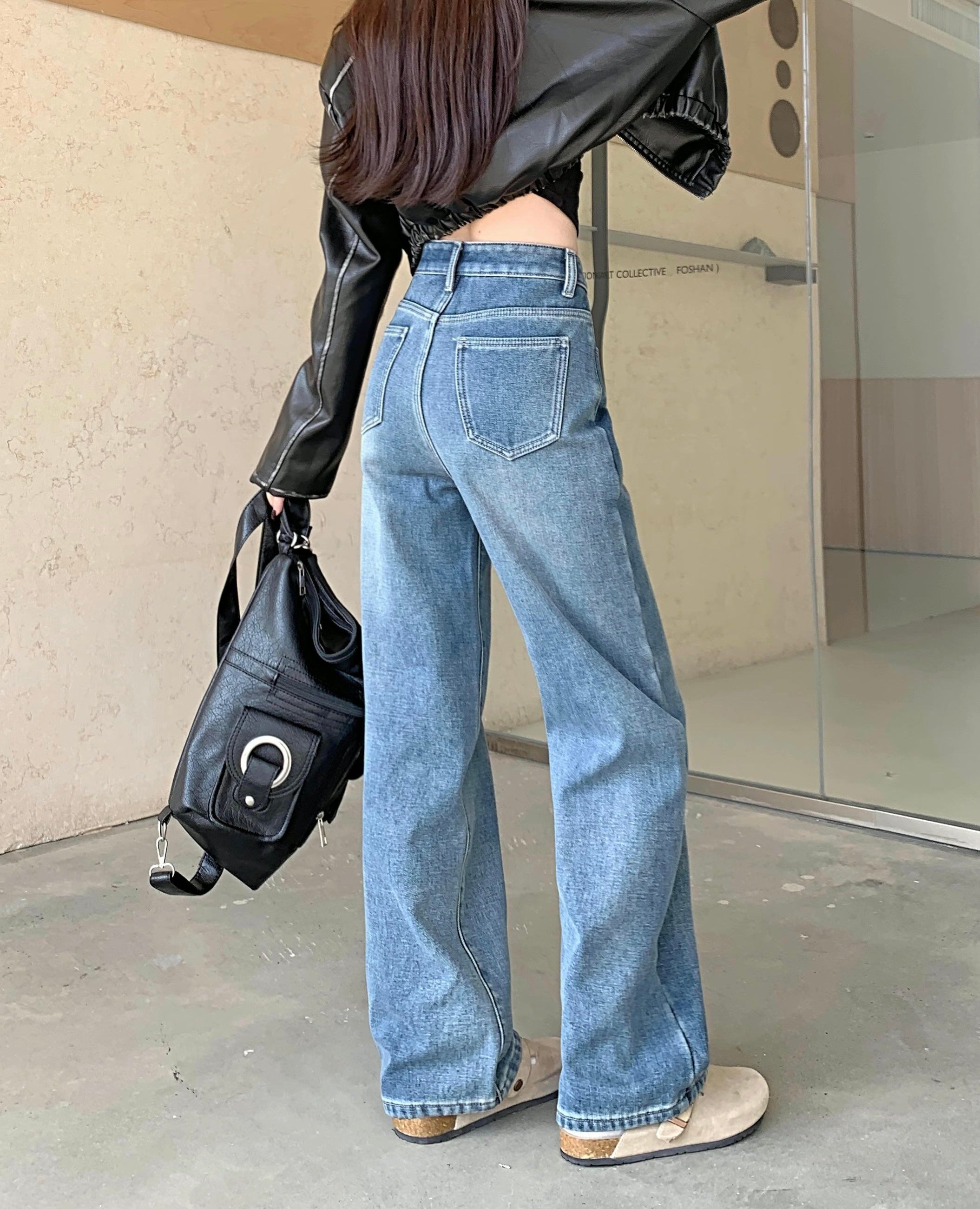 デニムパンツ 裏起毛 レディース 韓国 ファッション 冬デニム? カジュアル パンツ 防寒 厚手 ダメージ加工 おしゃれ かわいい シンプル