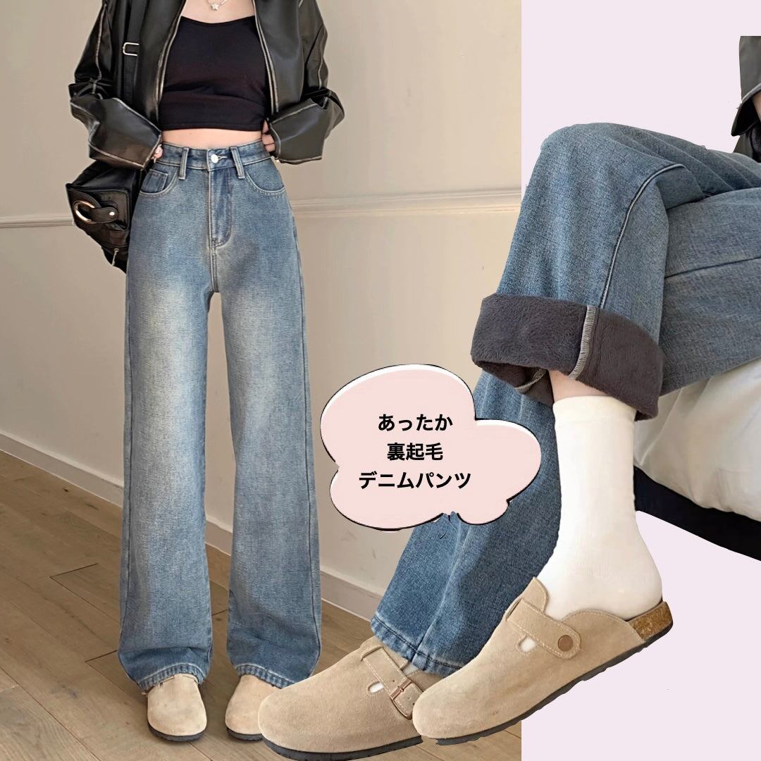 あったか 裏起毛 デニムパンツ レディース 韓国 ファッション 冬デニム カジュアル パンツ 防寒 厚手 ダメージ加工 おしゃれ かわいい シンプル