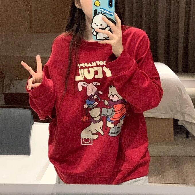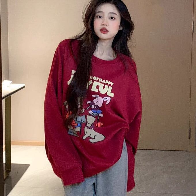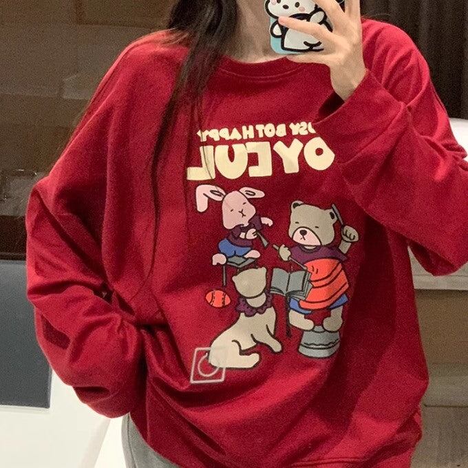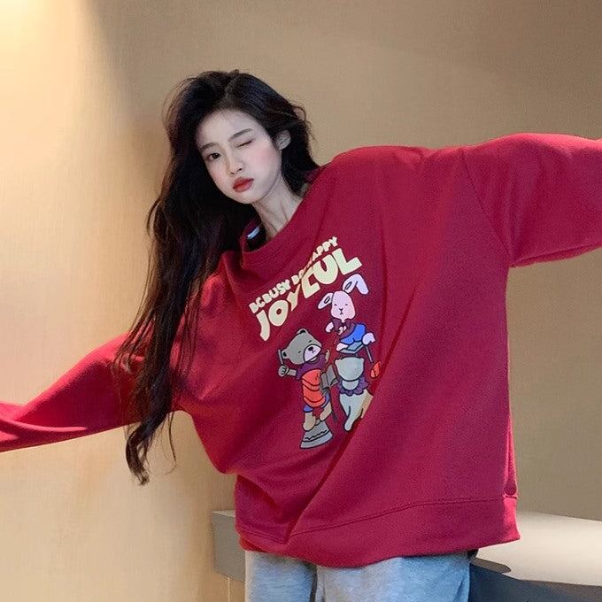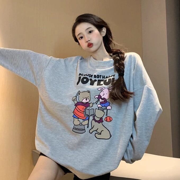 かわいい キャラクター トレーナー レディース 韓国 ビッグシルエット ロゴ プリント スウェット 秋冬トップス