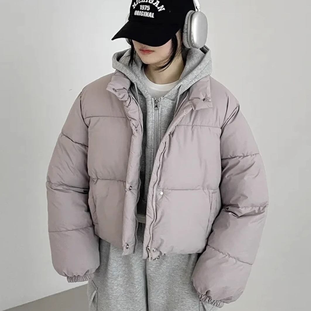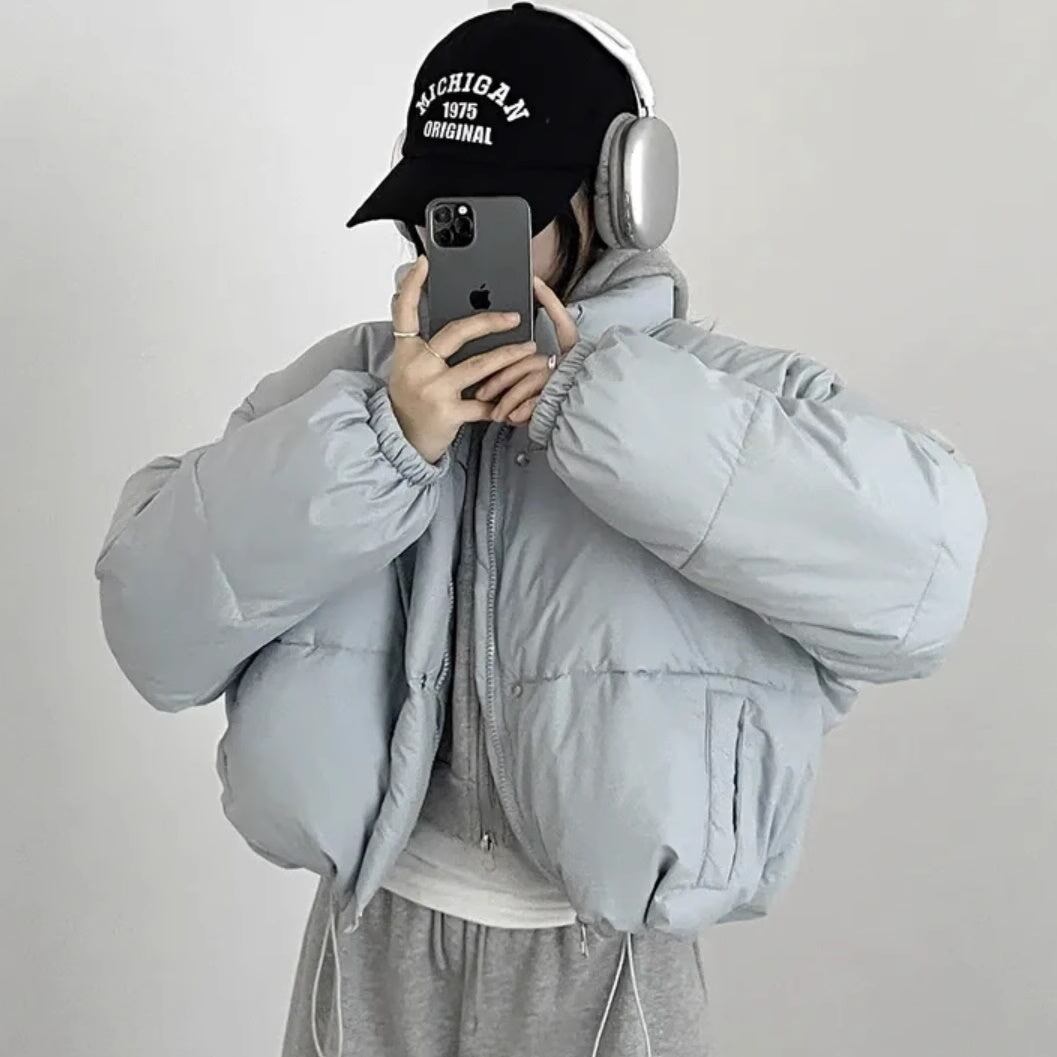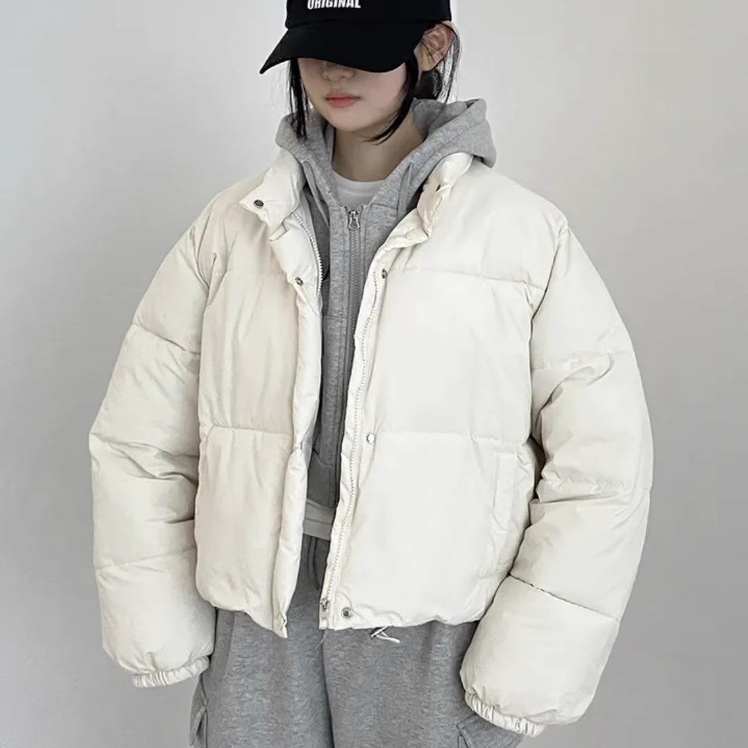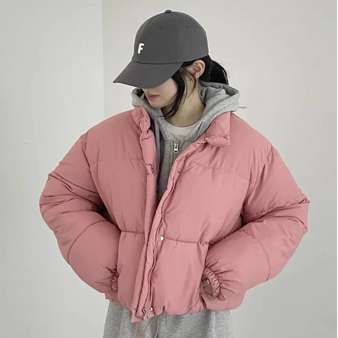 エコダウンジャケット レディース 韓国 ファッション ニュアンスカラー ショート丈 クロップジャケット ボリュームアウター 冬ジャケット ダウン 防寒アウター