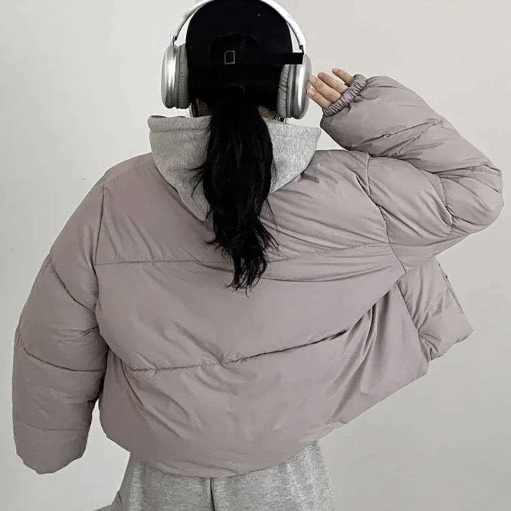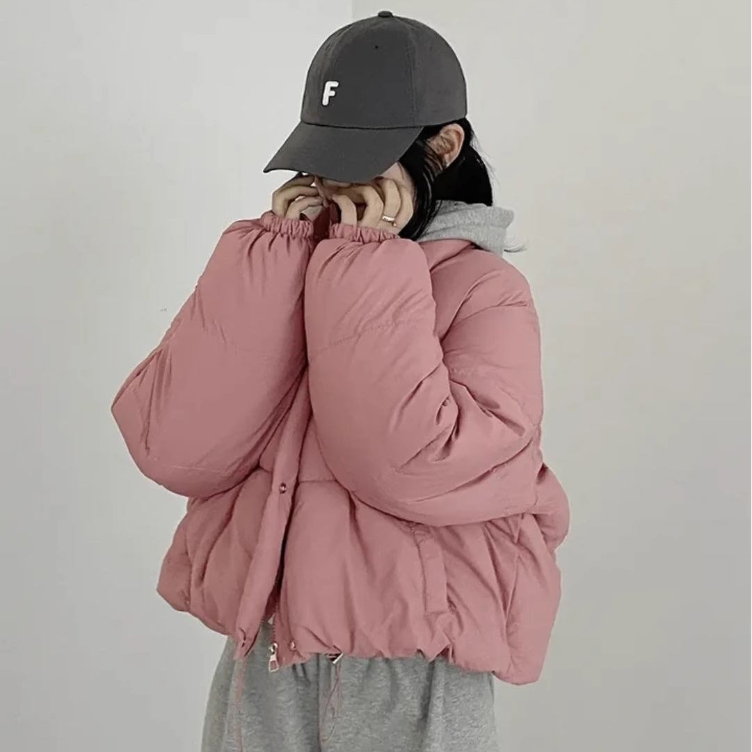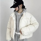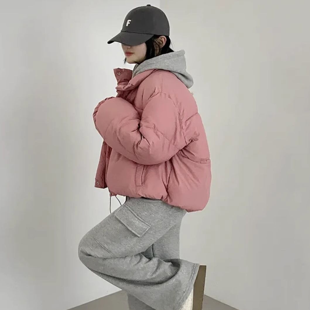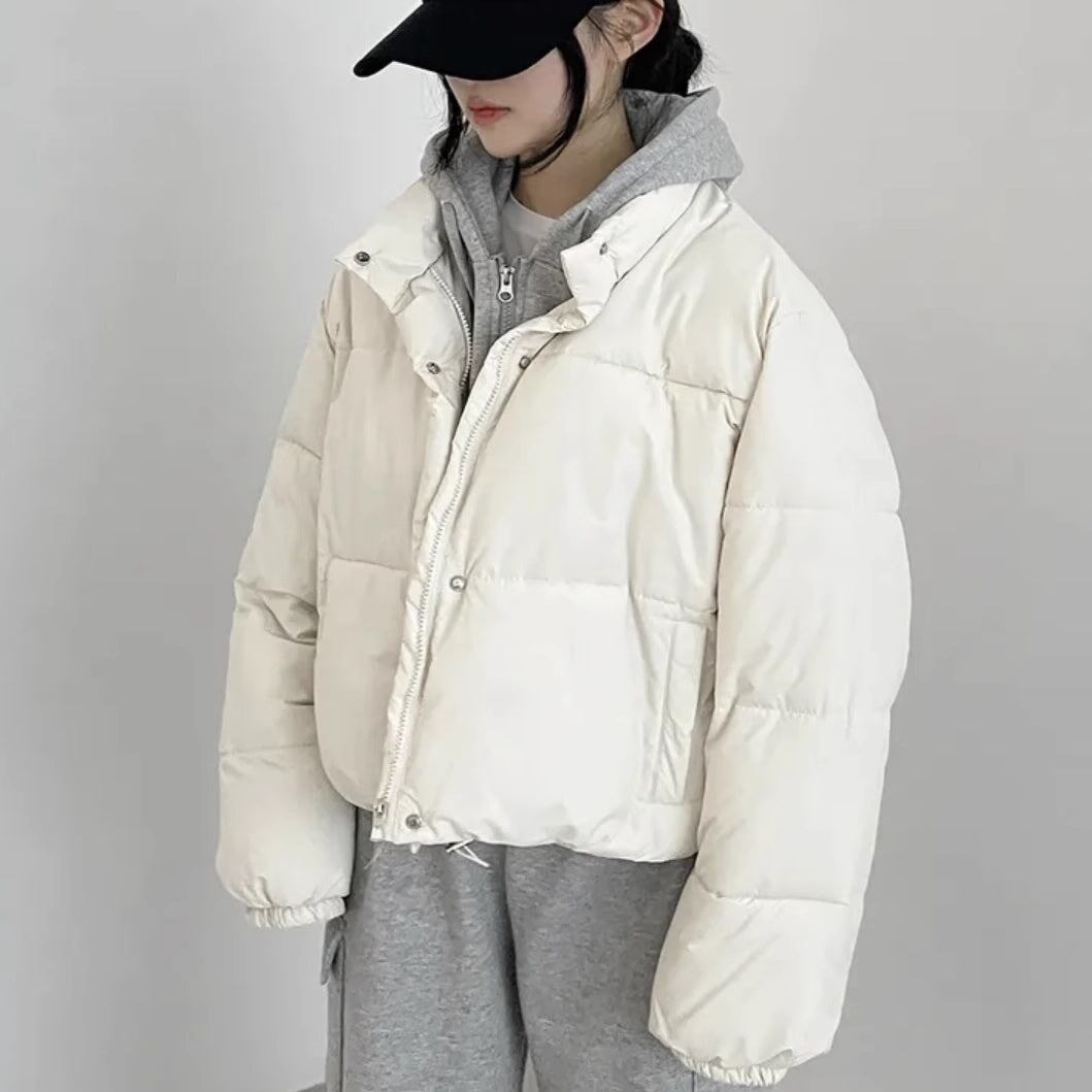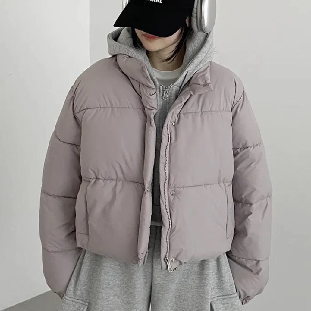 エコダウンジャケット レディース 韓国 ファッション ニュアンスカラー ショート丈 クロップジャケット ボリュームアウター 冬ジャケット ダウン 防寒アウター