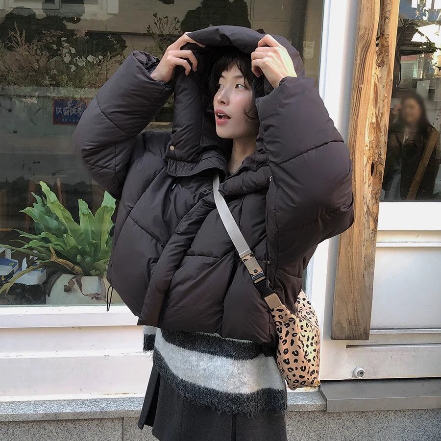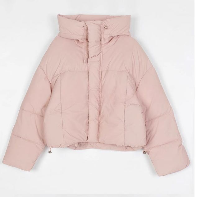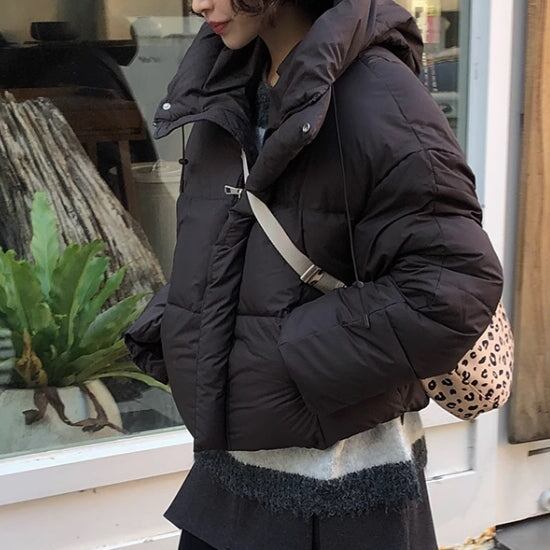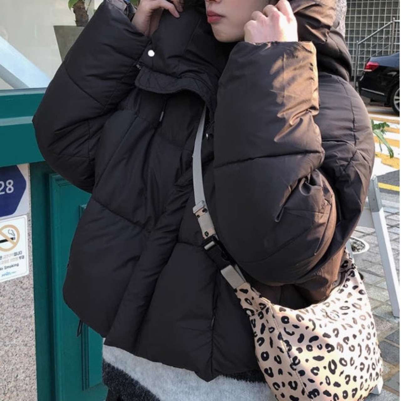 エコ ダウンジャケット レディース 韓国 ファッション クロップド丈 アウター ボリューム 中綿 フード ジャケット 防寒