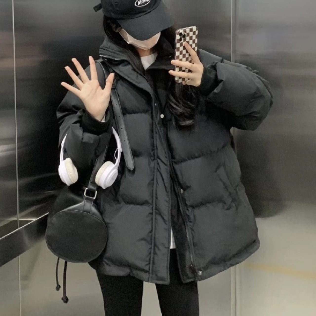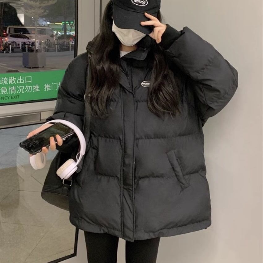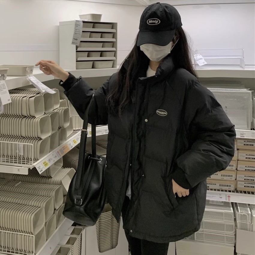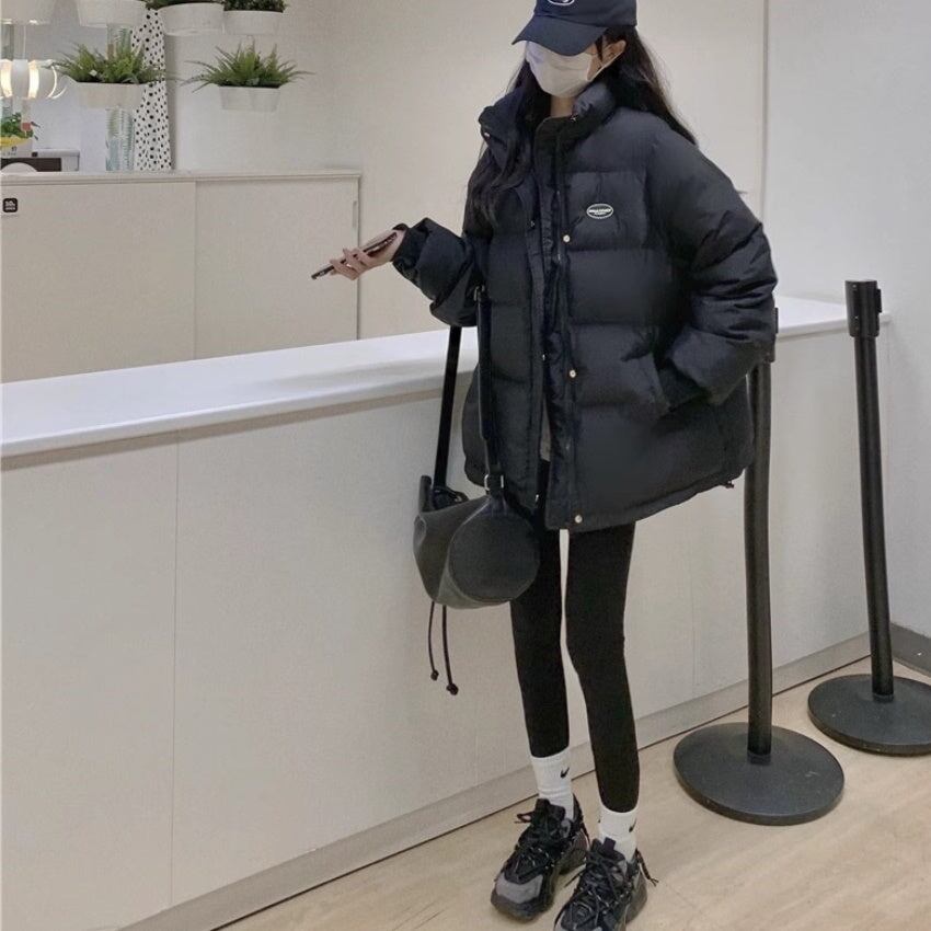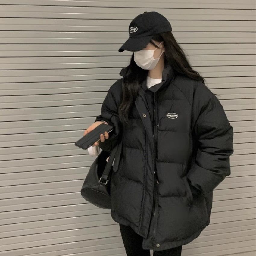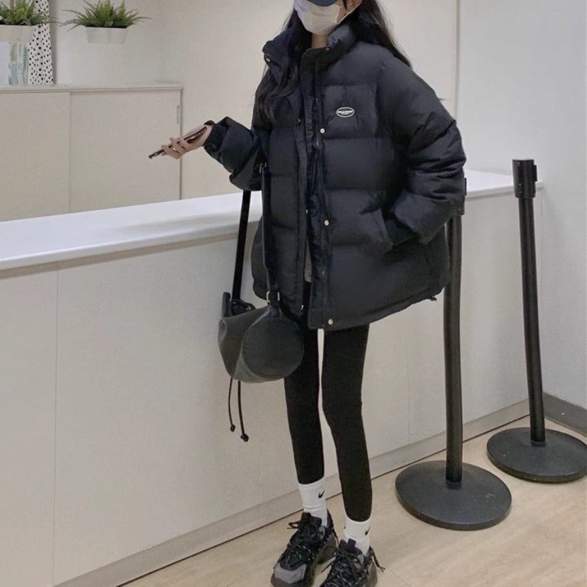 ダウンジャケット レディース 韓国 ファッション 冬 アウター ワンポイント ロゴ 黒 アウター 中綿 シック メンズライク