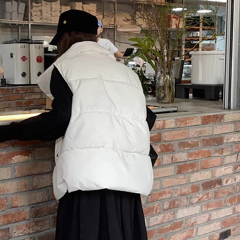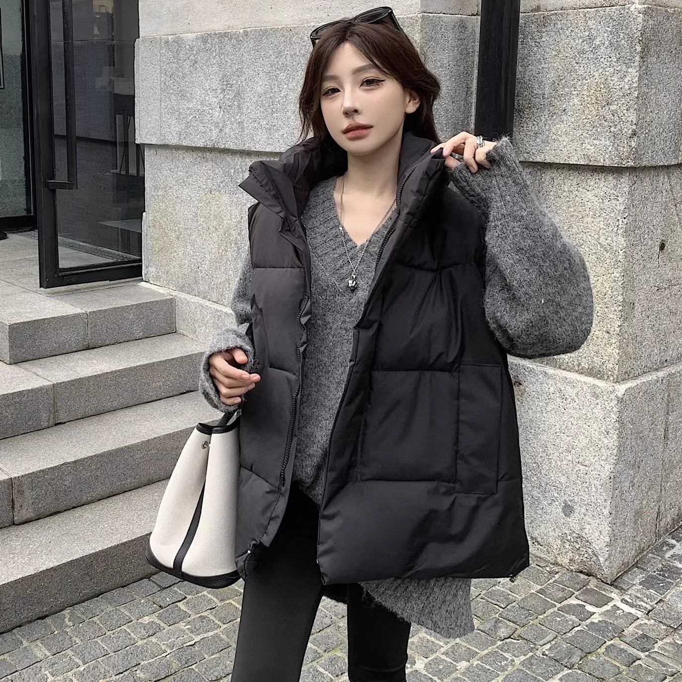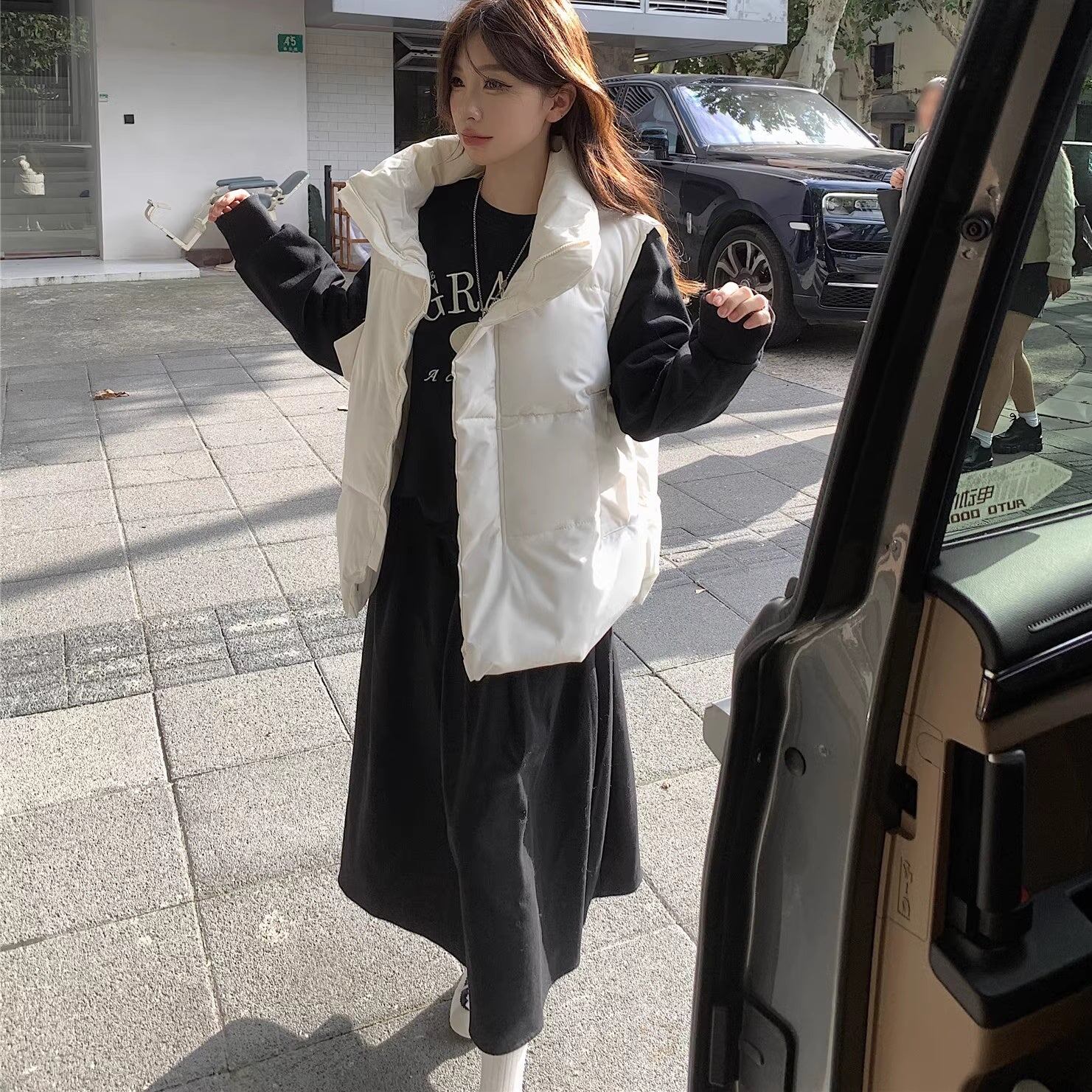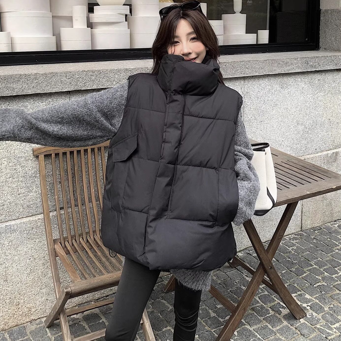 中綿ベスト ダウンジャケット レディース 韓国 ファッション オーバーサイズ ビッグシルエット ロング丈 無地 ベスト 冬アウター