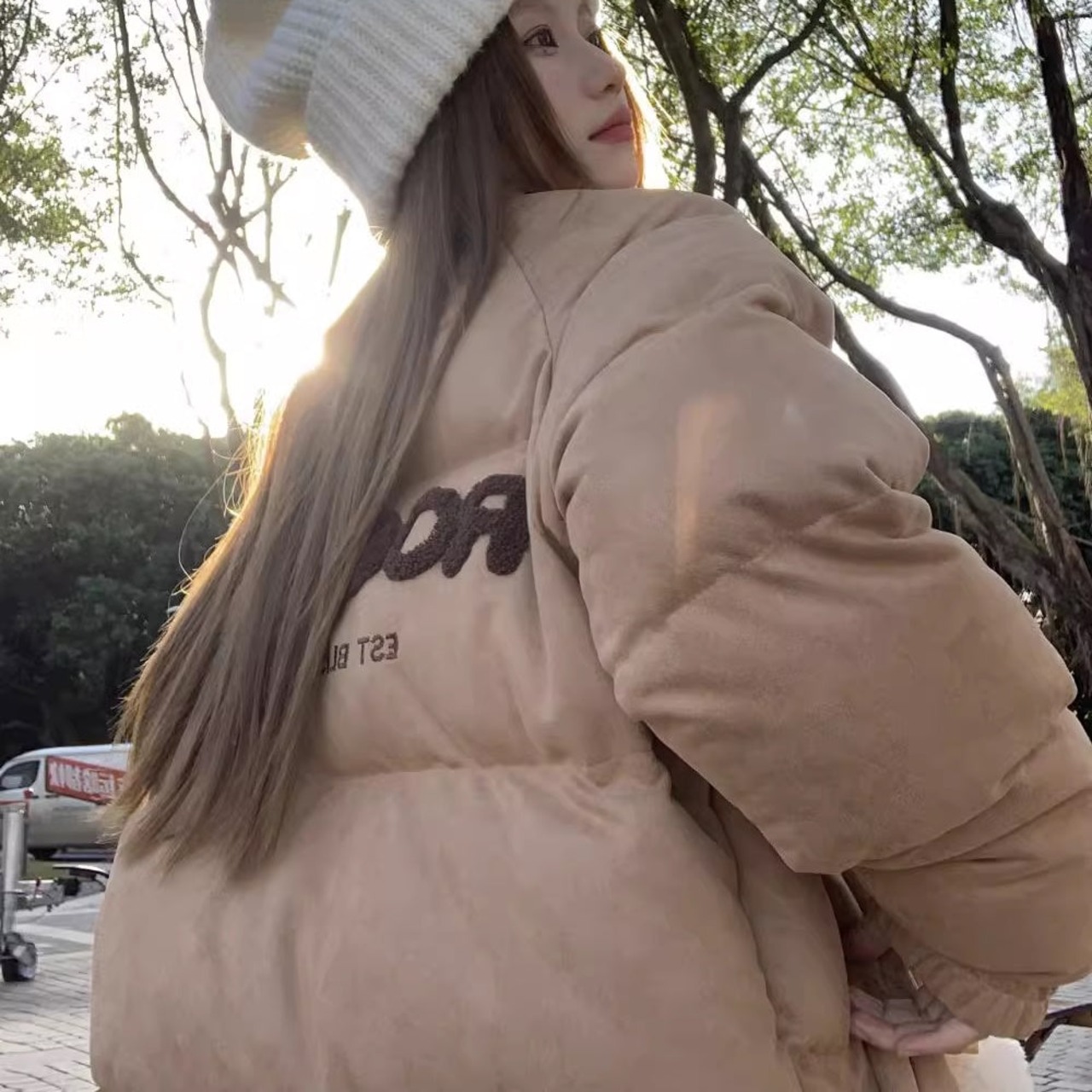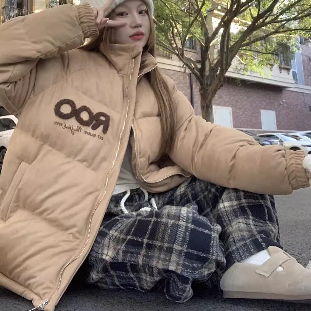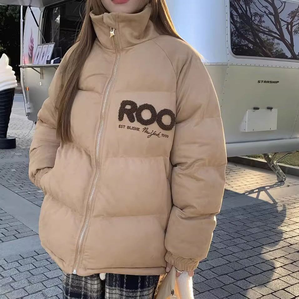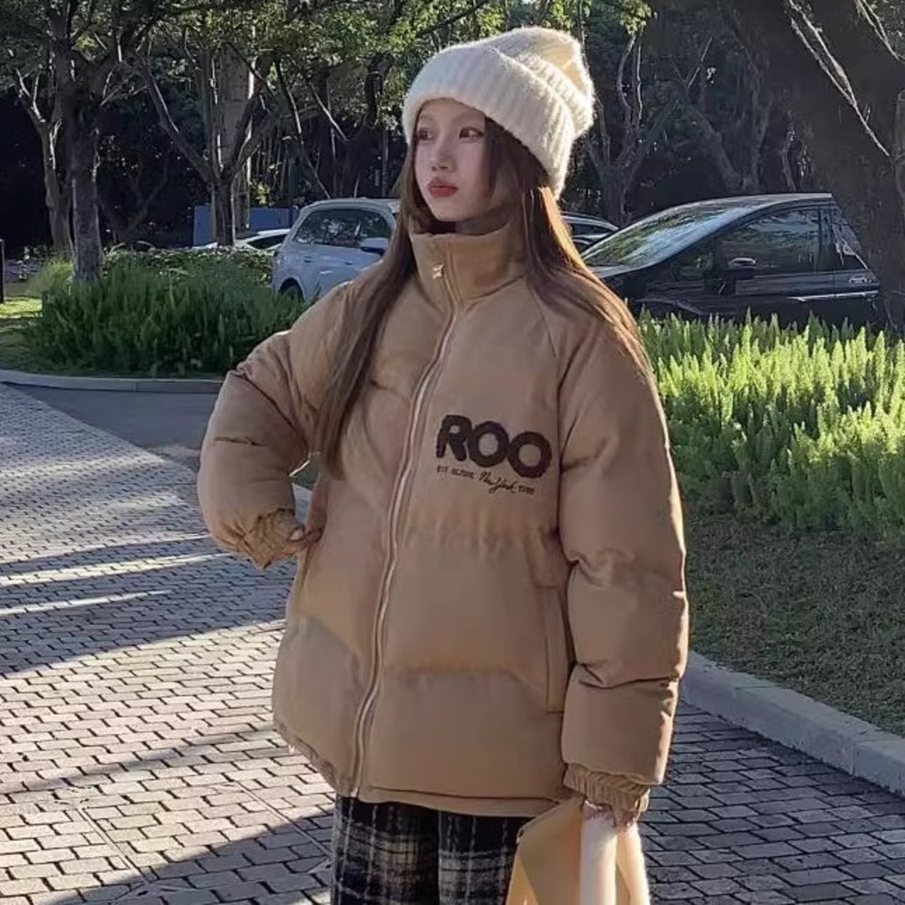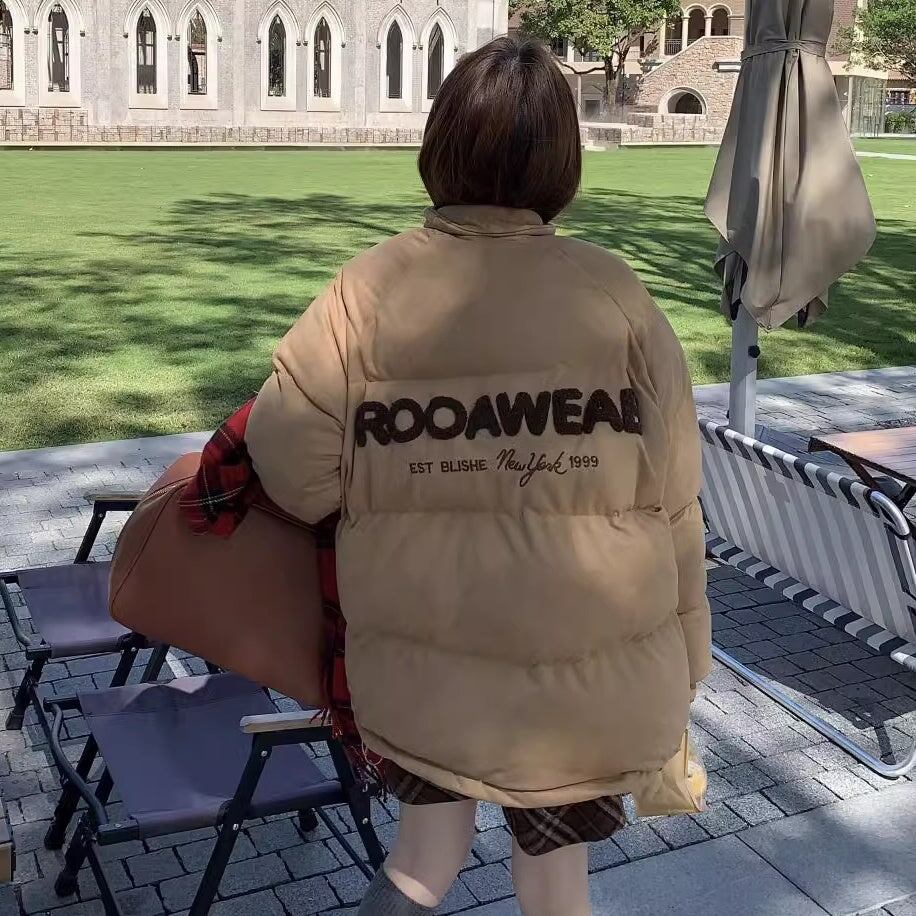 エコダウンジャケット 冬アウター レディース 韓国 ファッション 防寒コート 中綿 ロゴ 立体ロゴ アップリケ バックシャン プリント