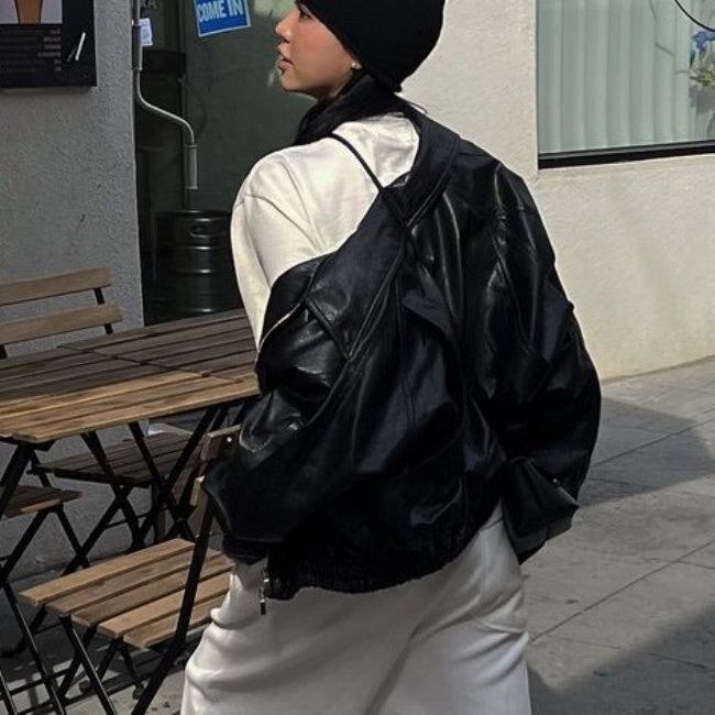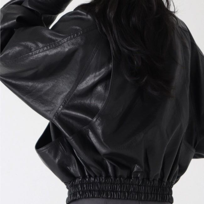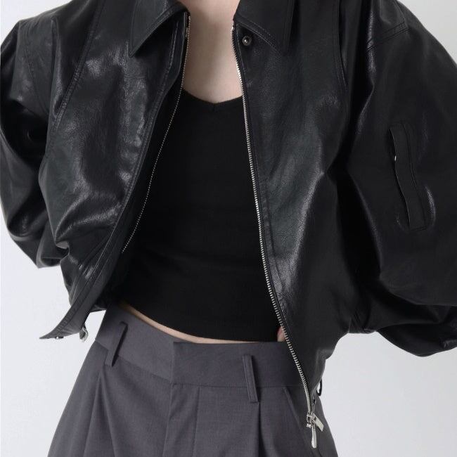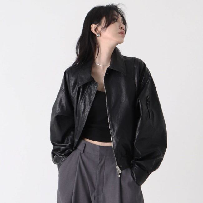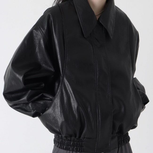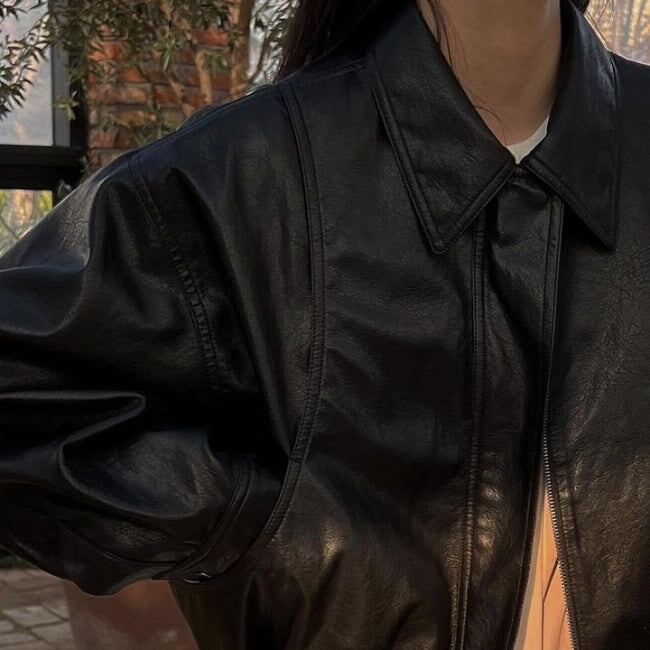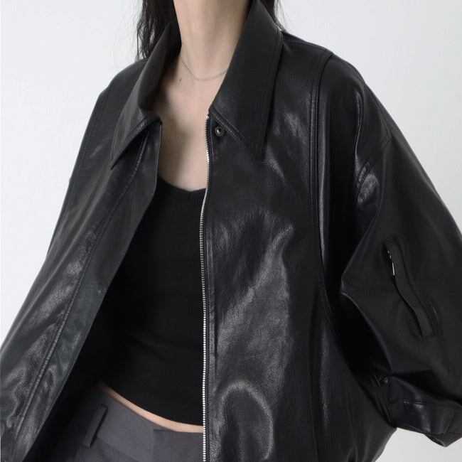 レザージャケット ブルゾン レディース 韓国 ファッション PUレザー フェイクレザー ダブルジップ ビッグシルエット ポケット