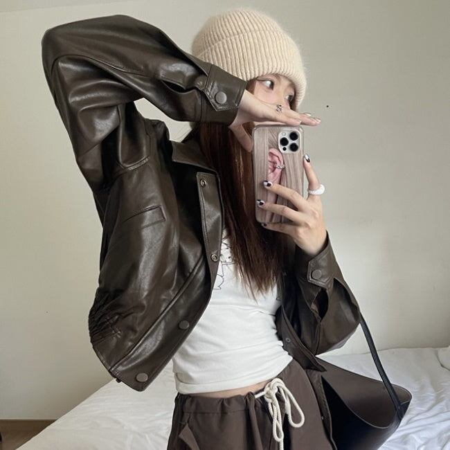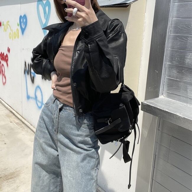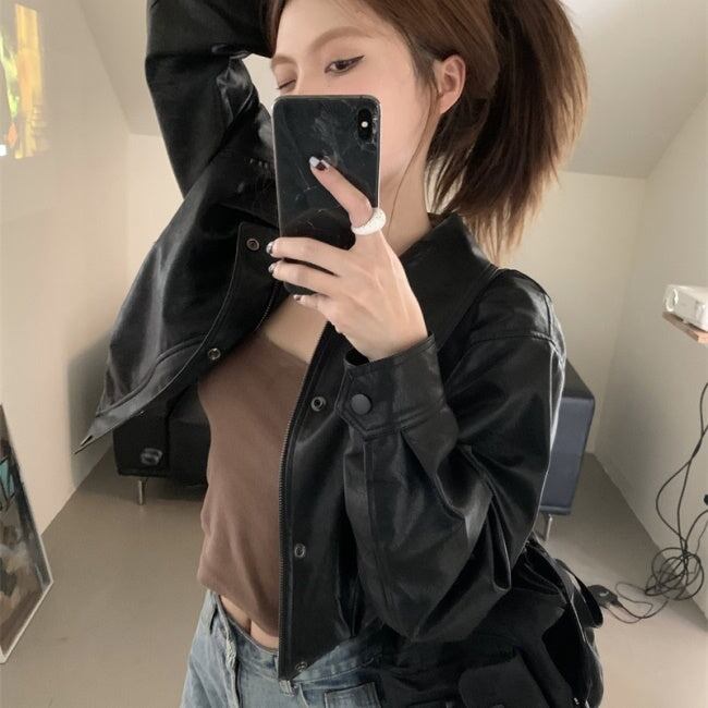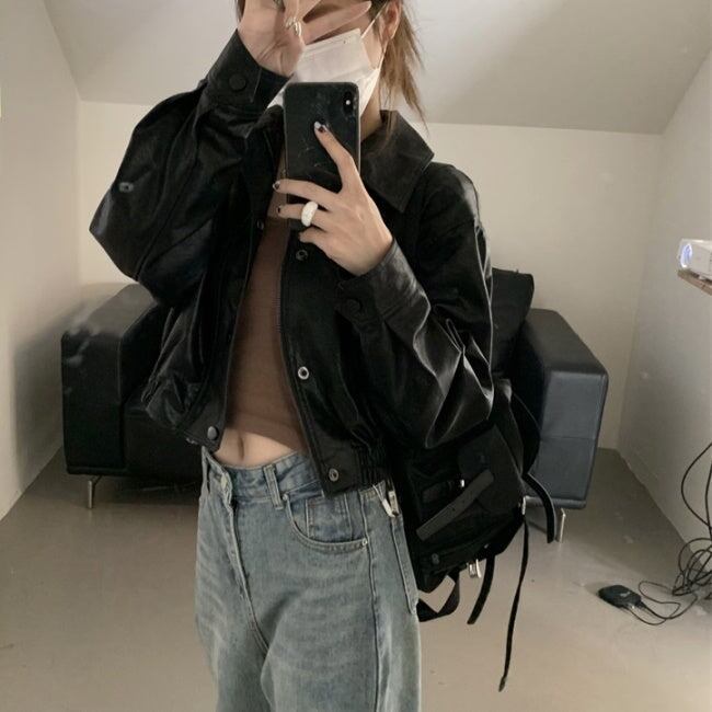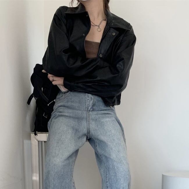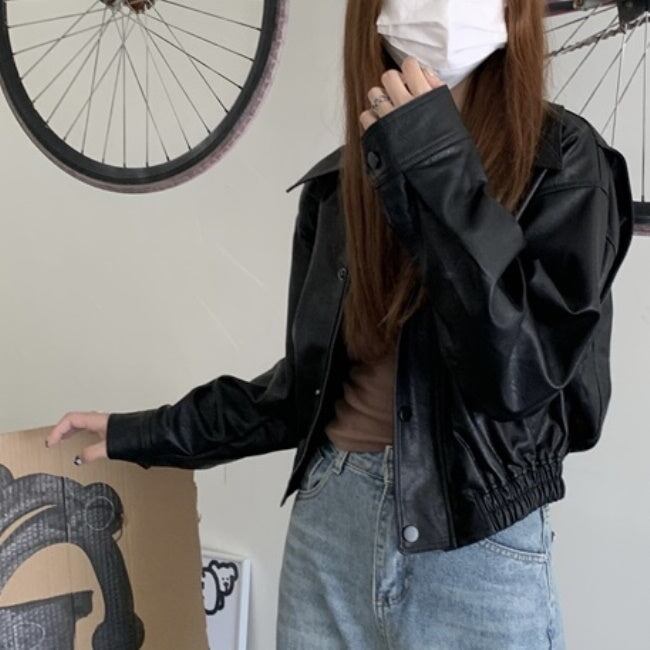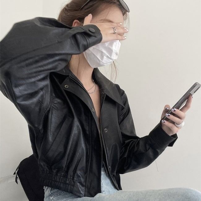 エコレザー ジャケット レディース 韓国 クロップド ショートジャケット オーバーサイズ 秋 アウター