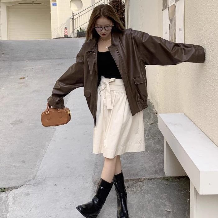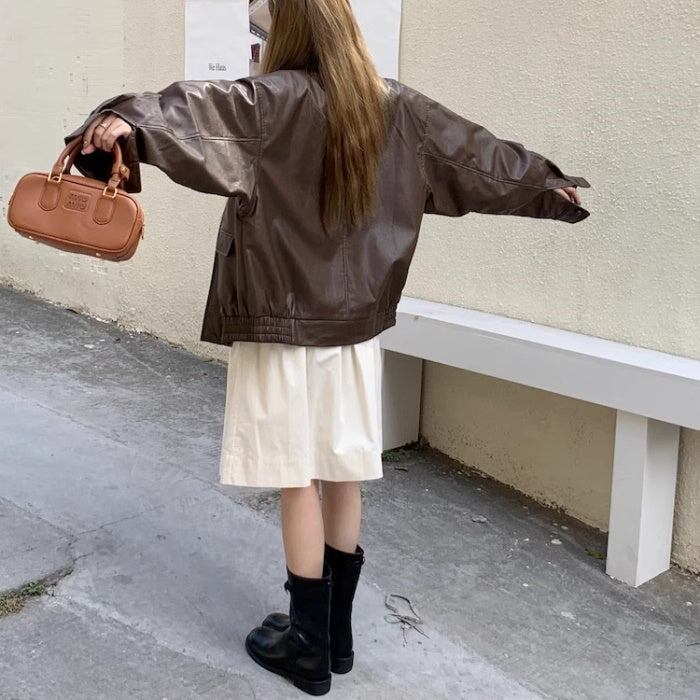 レザージャケット レディース 韓国 ファッション フェイクレザー 合皮 ライダースジャケット ジップブルゾン オーバーサイズ ゆったりサイズ