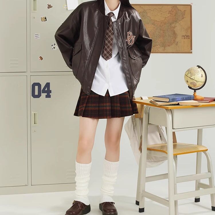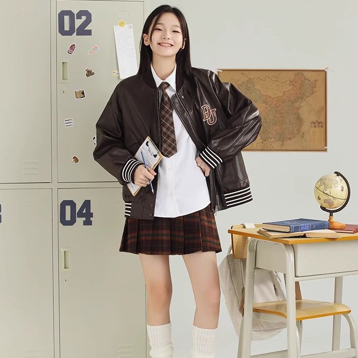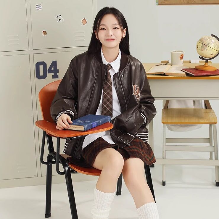 ジップブルゾン フェイクレザー レディース 韓国 ファッション ジャエット アウター 冬 レザーアウター ロゴ ワンポイント