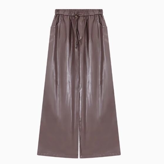 レザーパンツ ワイドパンツ レディース 韓国 ファッション 冬パンツ 大人 PUレザー ボトム 黒 茶 高見え