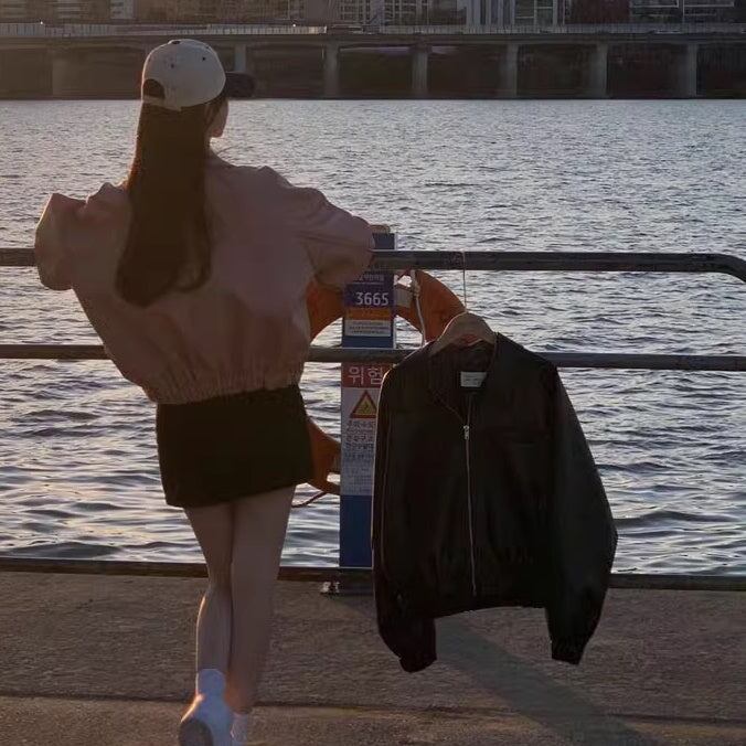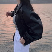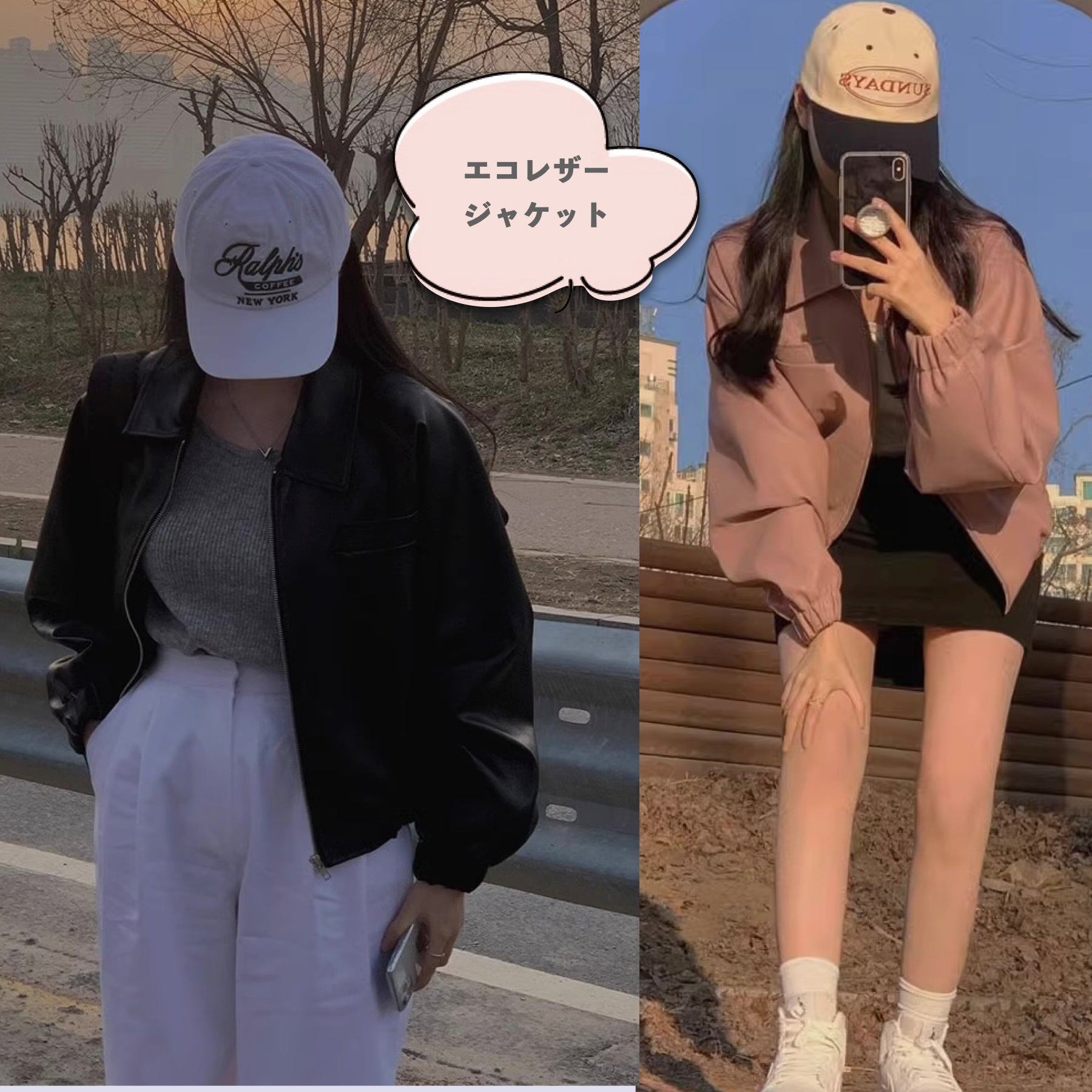 エコレザージャケット レディース 韓国 ファッション オーバーサイズ 無地 合皮 フェイクレザー ジップブルゾン