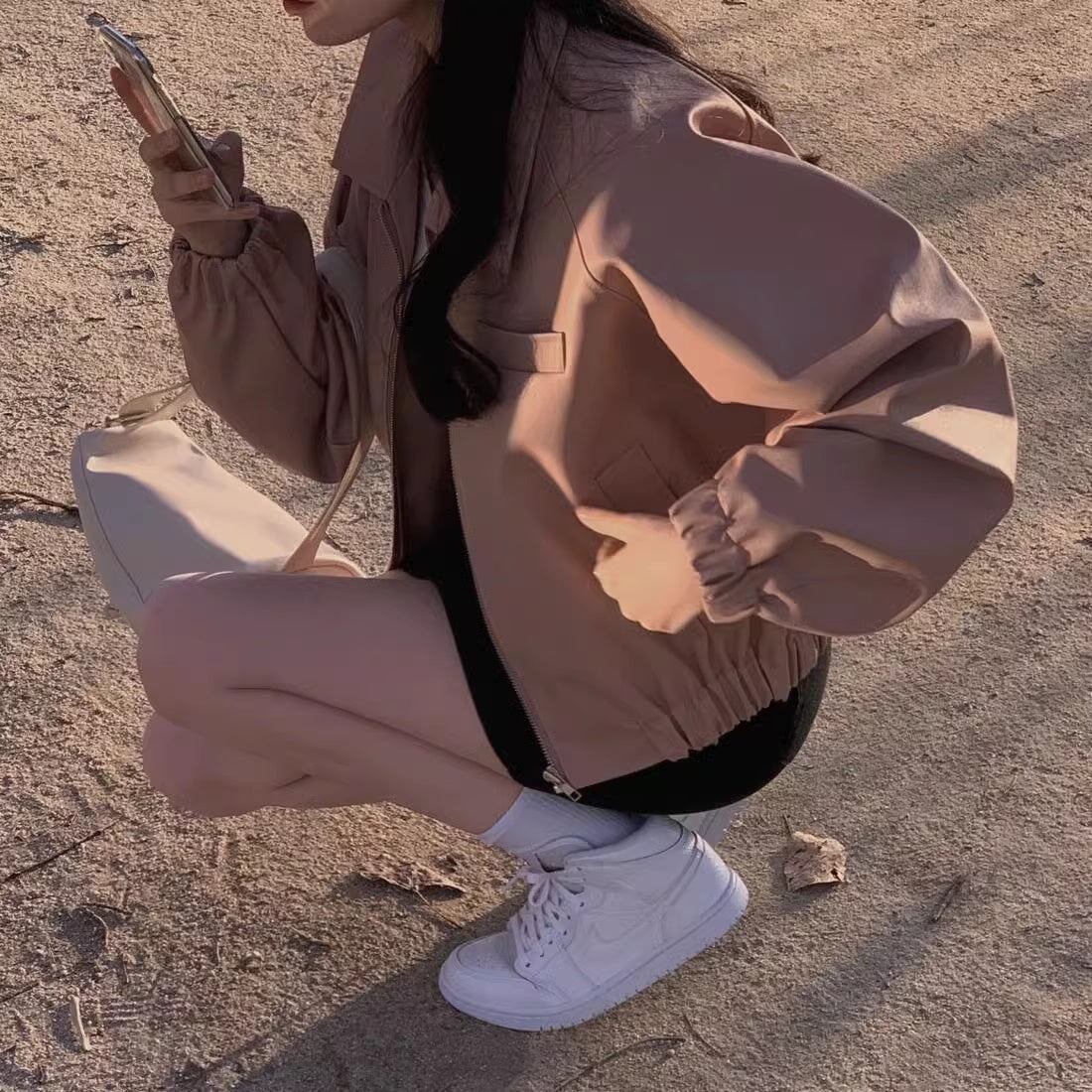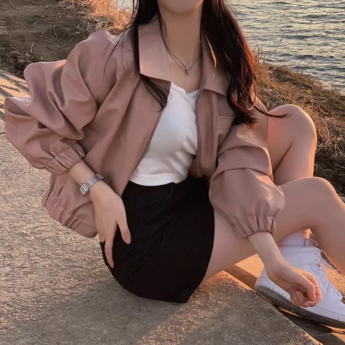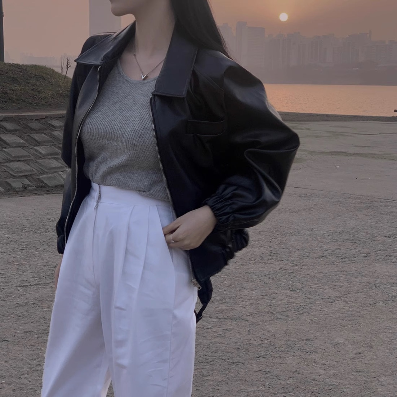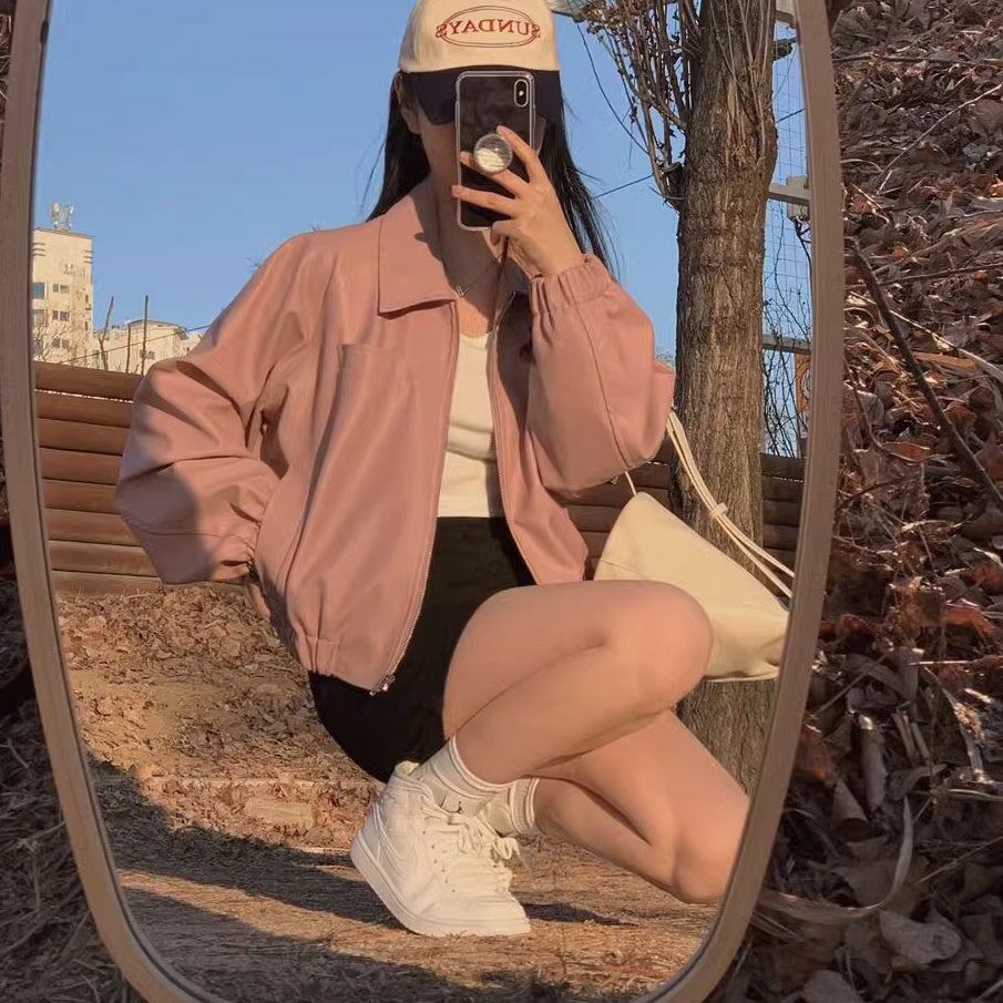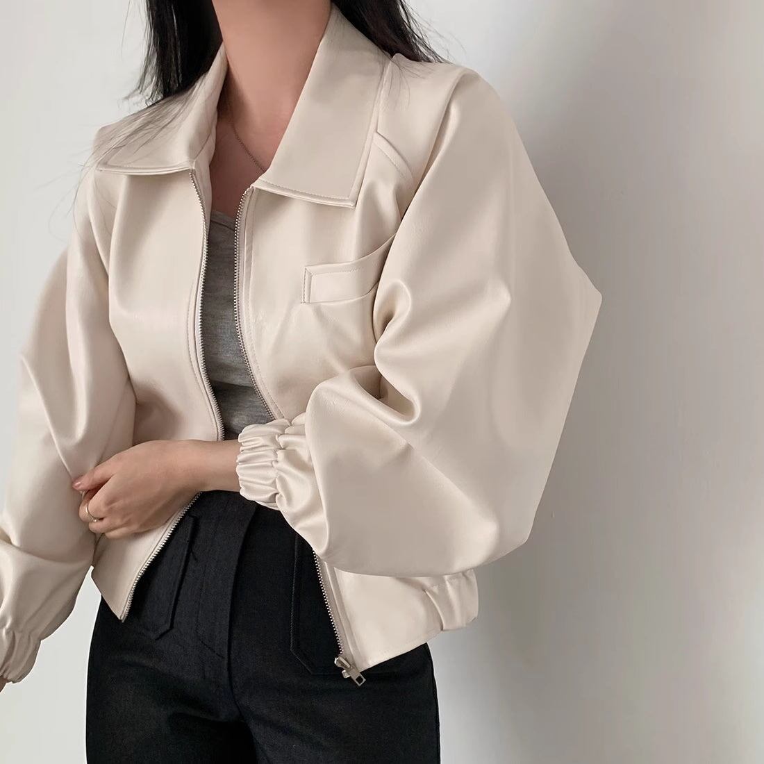 レザージャケット レディース 韓国 ファッション 無地 合皮 フェイクレザー ジップブルゾン ビッグシルエット おしゃれアウター