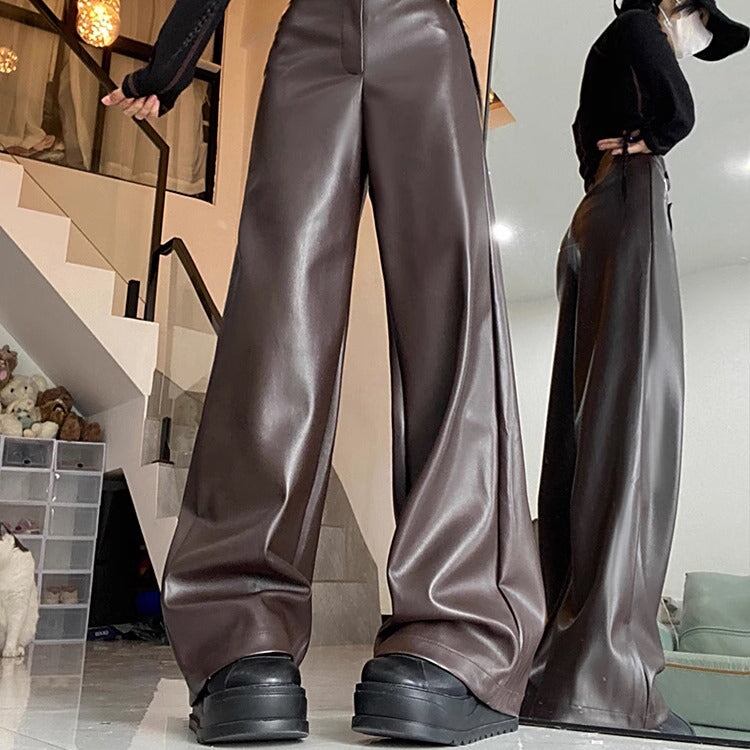 レザーパンツ モップレザー レディース 韓国 ファッション ワイドパンツ 秋冬 おしゃれ フェイクレザー PUレザー