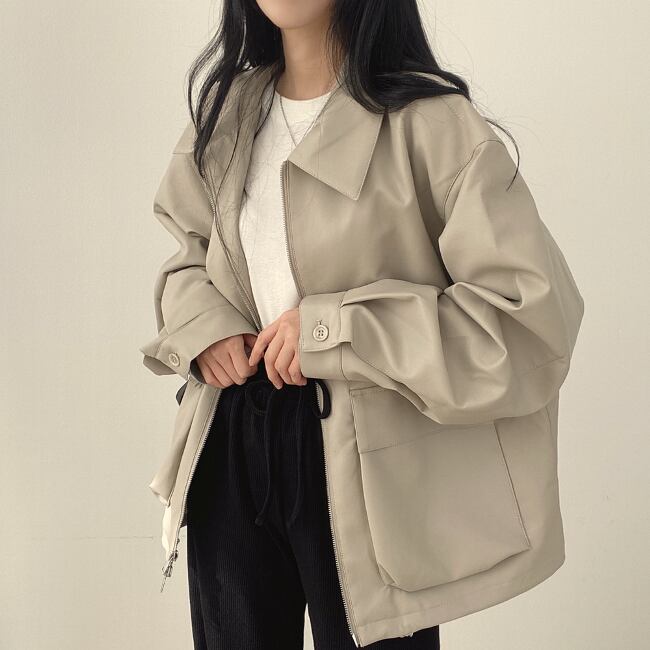 オーバーサイズ エコレザー ジャケット レディース 韓国 ファッション 秋 メンズライク フェイクレザー ブルゾン