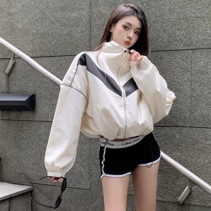 カラーブロック ナイロン ブルゾン レディース 韓国 ファッション スポーツ ナイロンジャケット