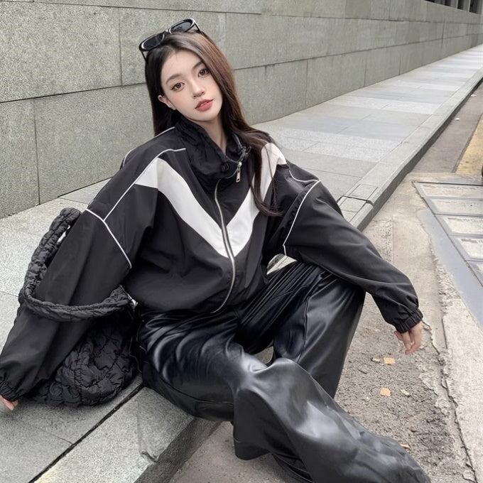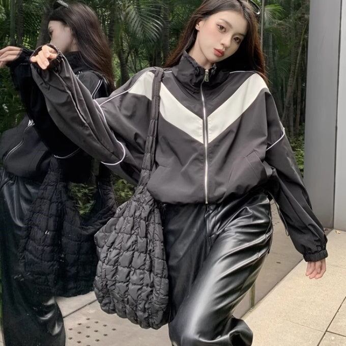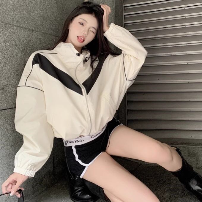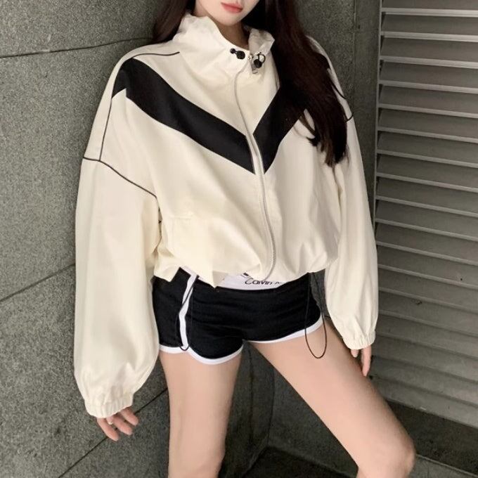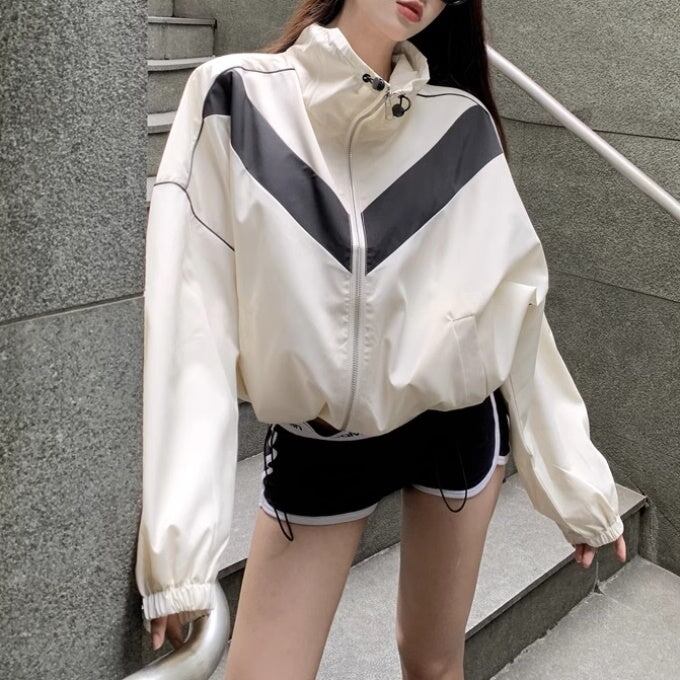 カラーブロック ブルゾン レディース 韓国 ファッション ジップジャケット 秋アウター 薄手 軽量 アウター ウィンドブレーカー マウンテンパーカー