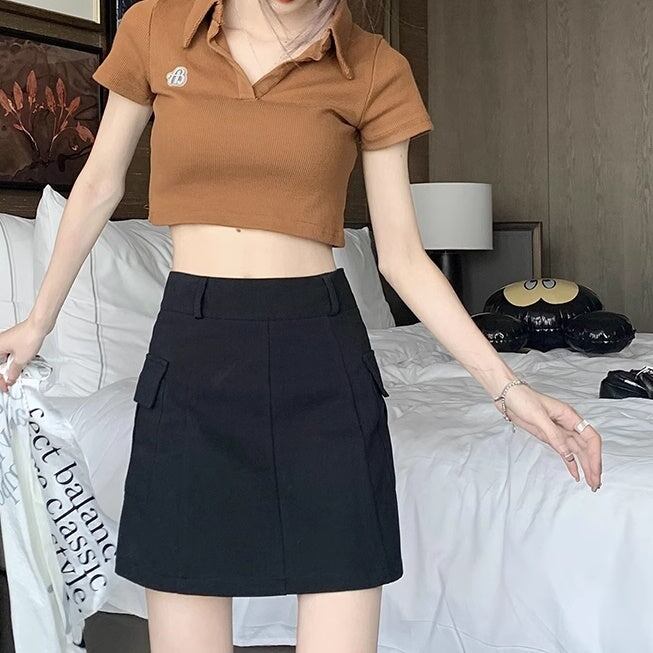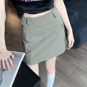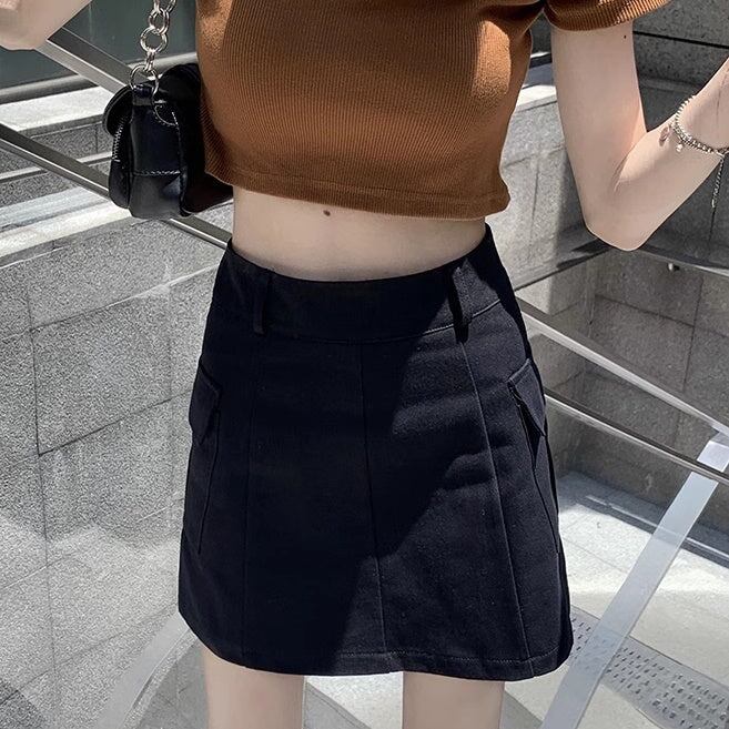 スカート 台形 レディース 韓国 ファッション 薄手 ミニスカート サイドポケット バックジップ ジップウエスト 夏スカート