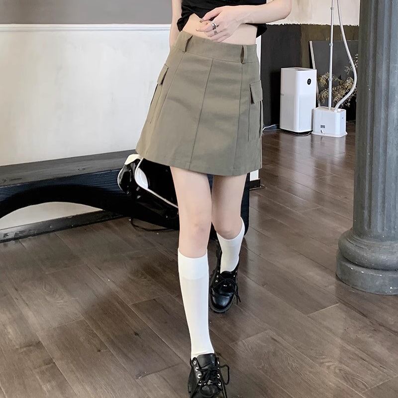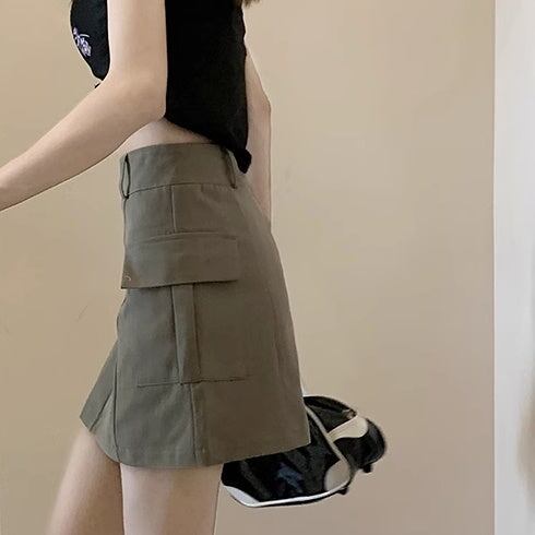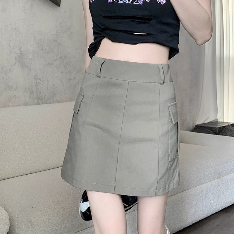 カーゴ ミニスカート レディース 韓国 ファッション 台形 サイドポケット スカート ジップウエスト 夏スカート