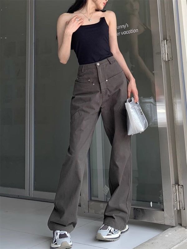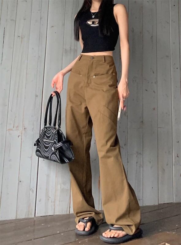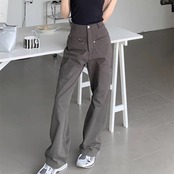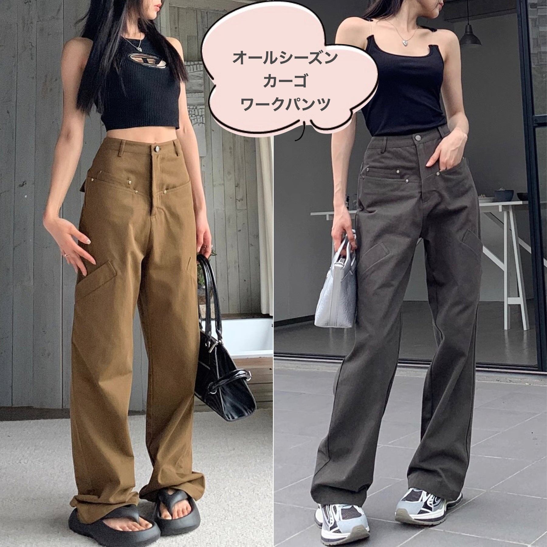 カーゴ ワークパンツ レディース 韓国 ファッション サイドポケット ミリタリー ストレート パンツ