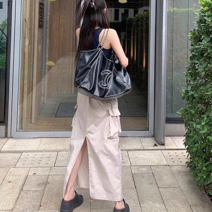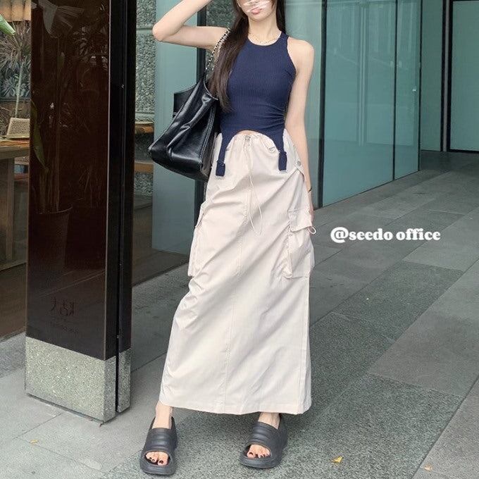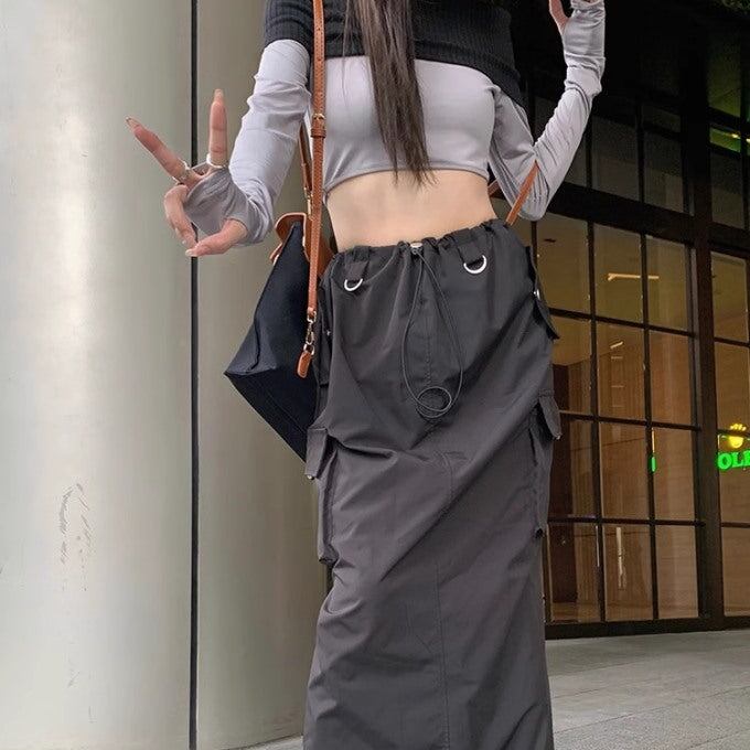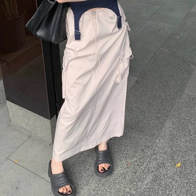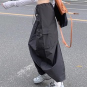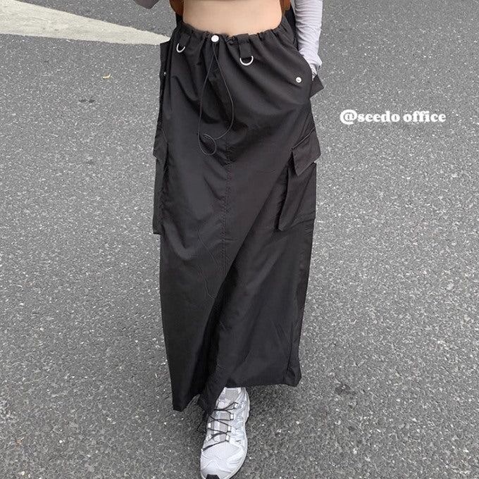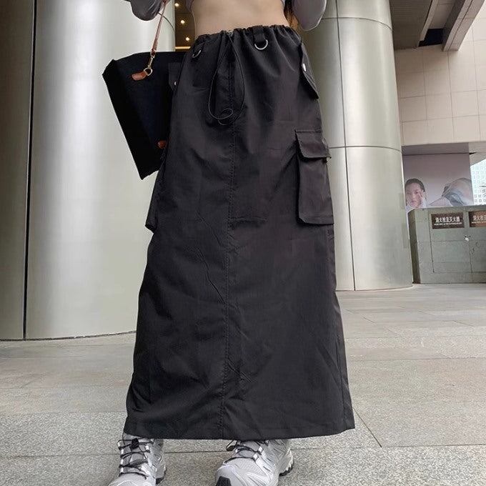カーゴスカート ロング 韓国 ファッション レディース ナイロン ミニタリー ナロースカート