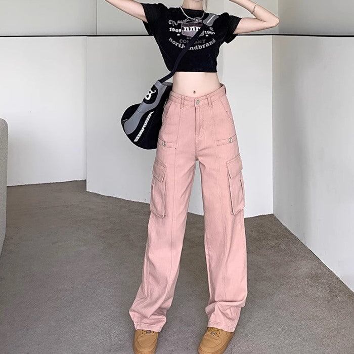 カーゴパンツ レディース 韓国 サイドポケット ペインターパンツ レギュラーフィット