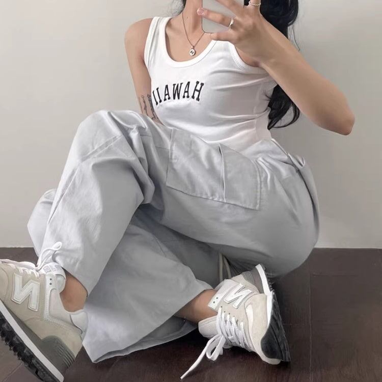 カーゴパンツ レディース 韓国 ファッション カジュアルパンツ ワイドパンツ サイドポケット