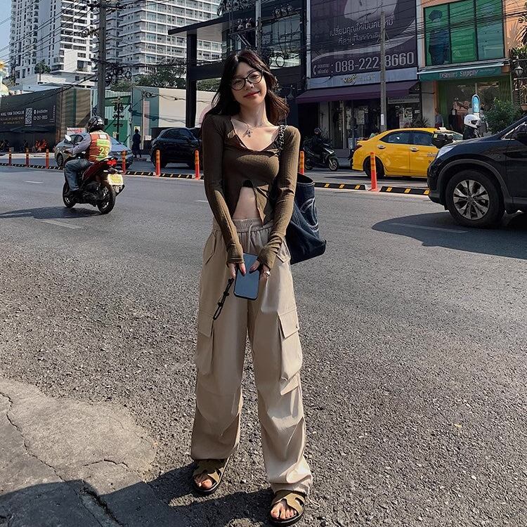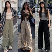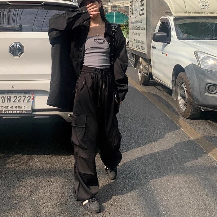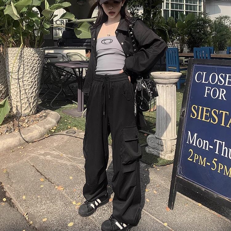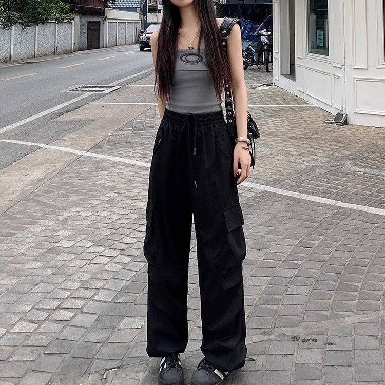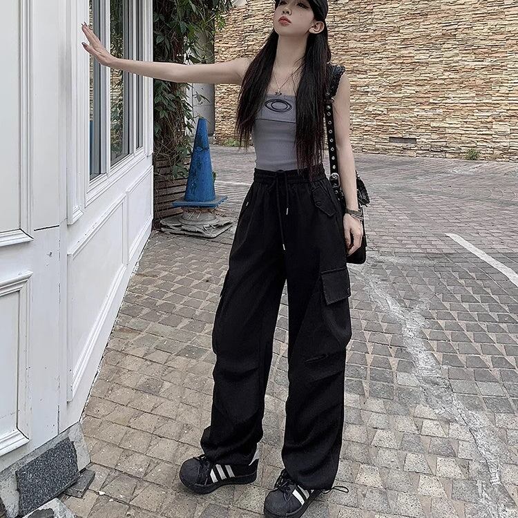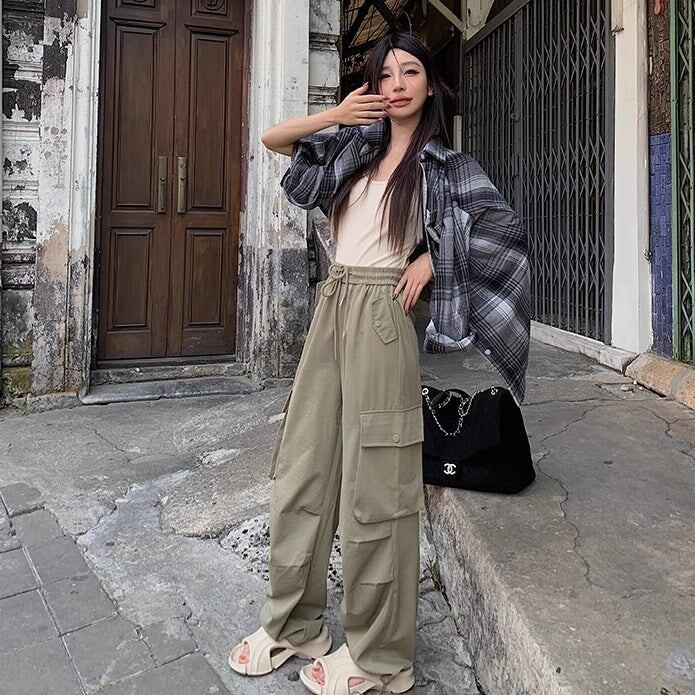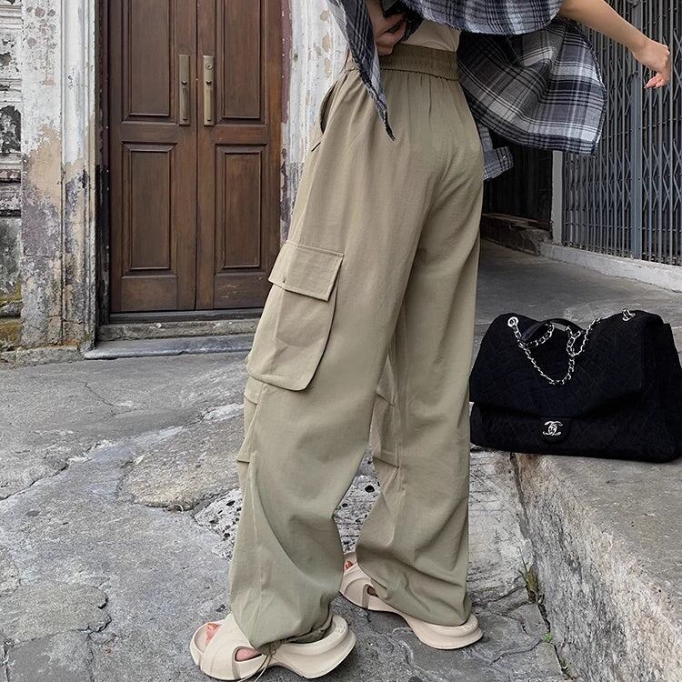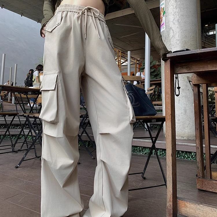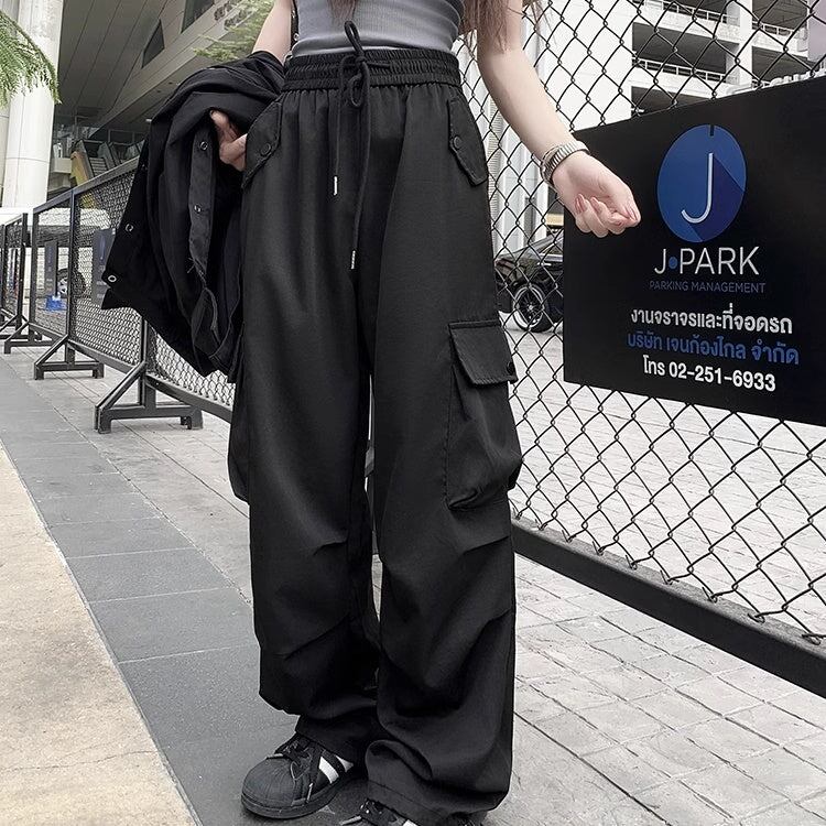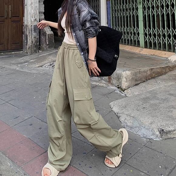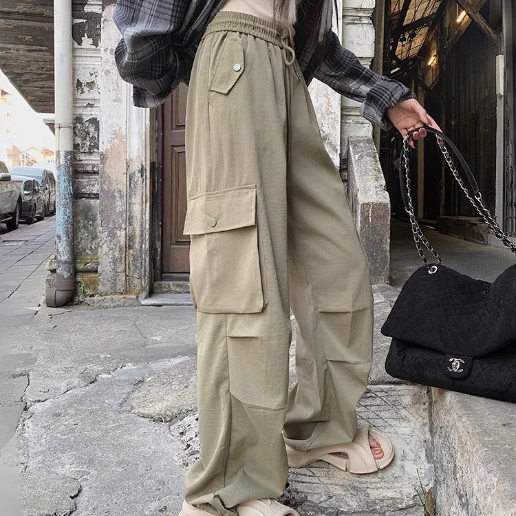 カーゴパンツ レディース 韓国 ファッション サイドポケット 薄手 ゆったり カジュアルパンツ ウエストゴム ワイドパンツ