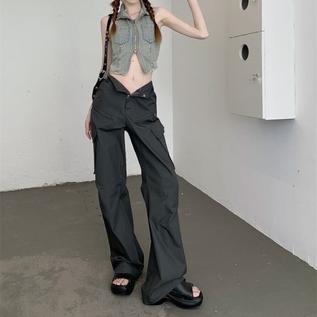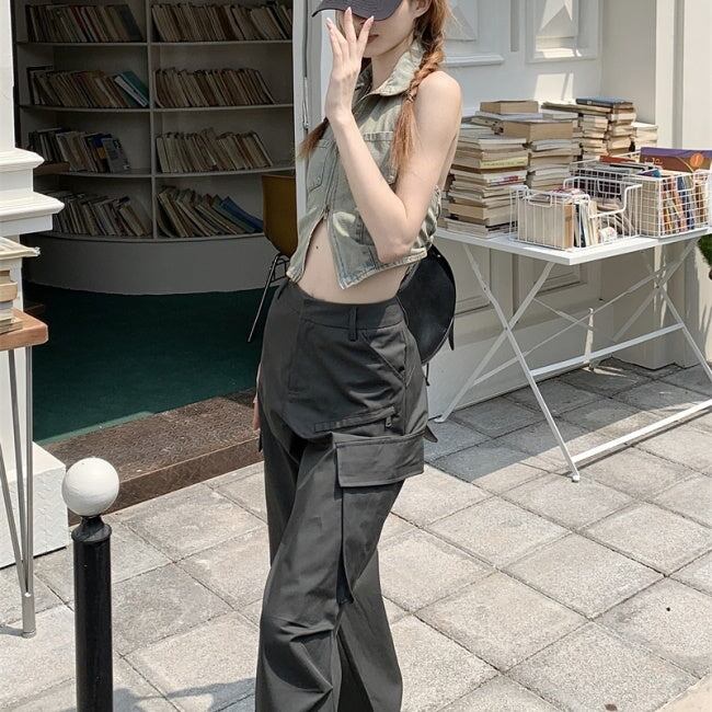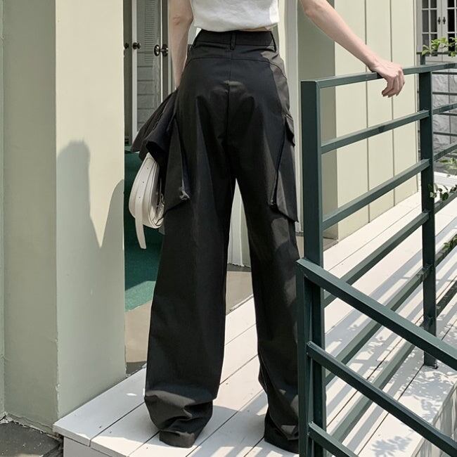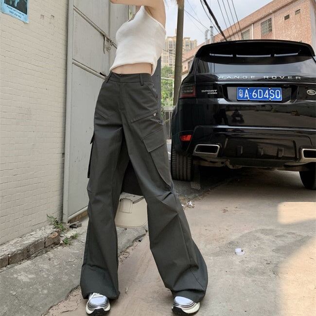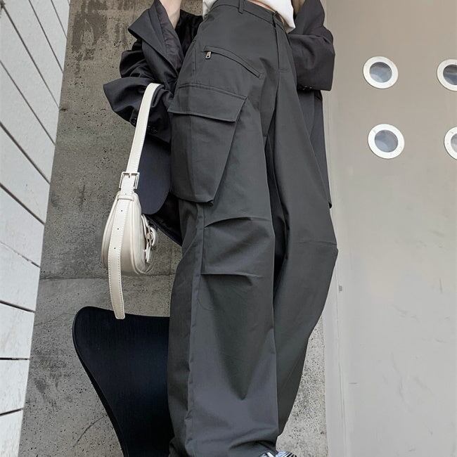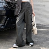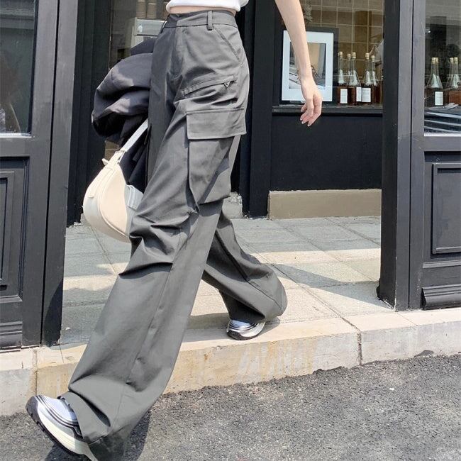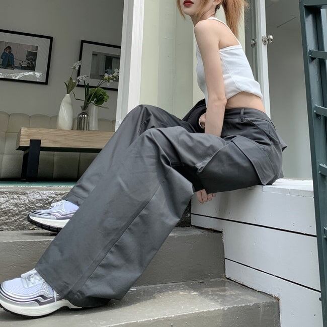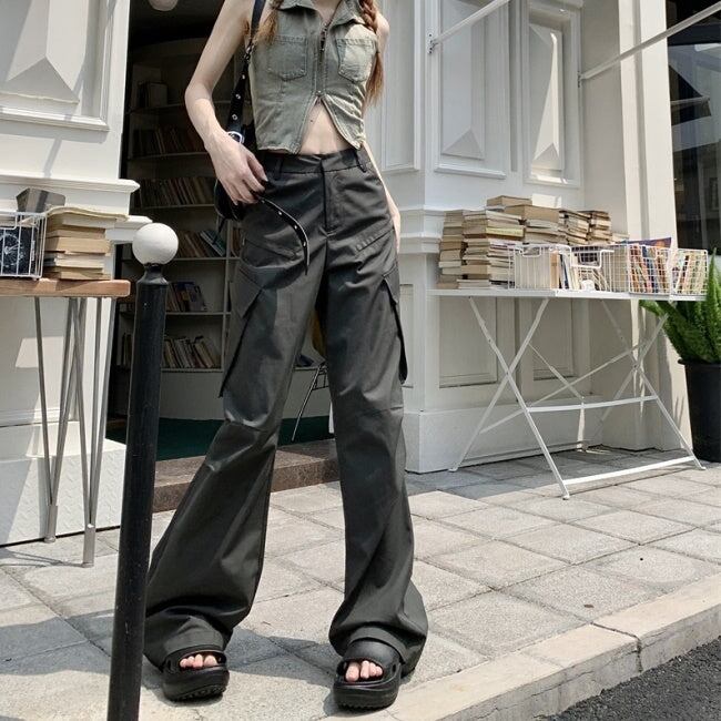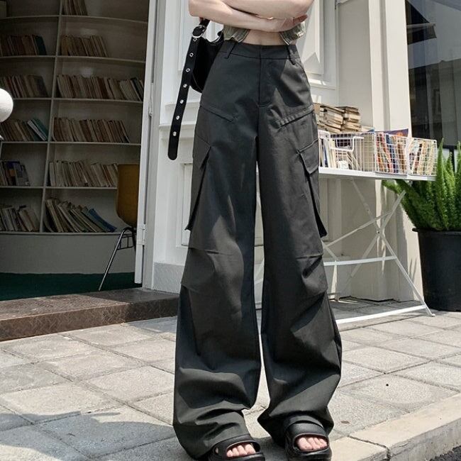 カーゴパンツ レディース 韓国 ファッション 夏 サイドポケット ミリタリー パンツ カジュアル アウトドア ワイド フレア パンツ