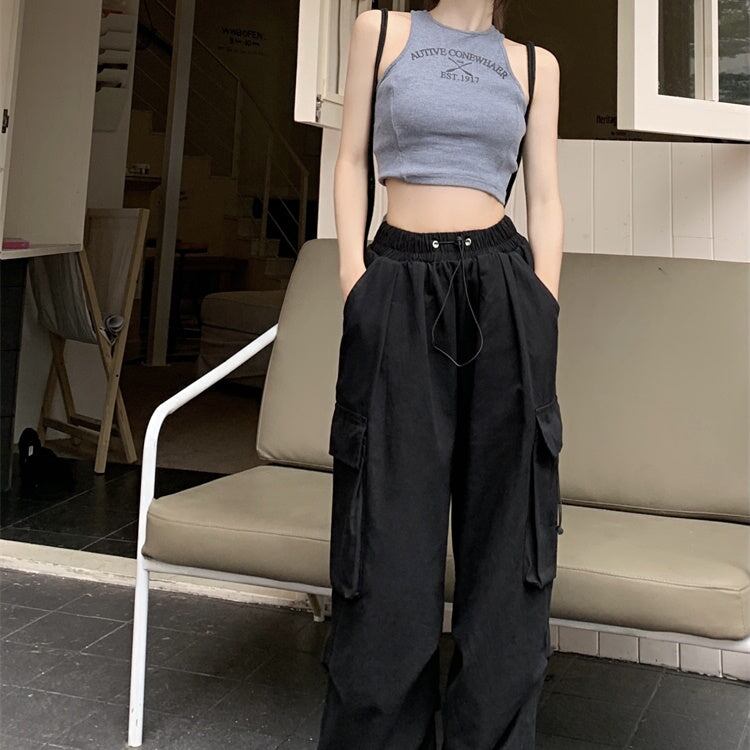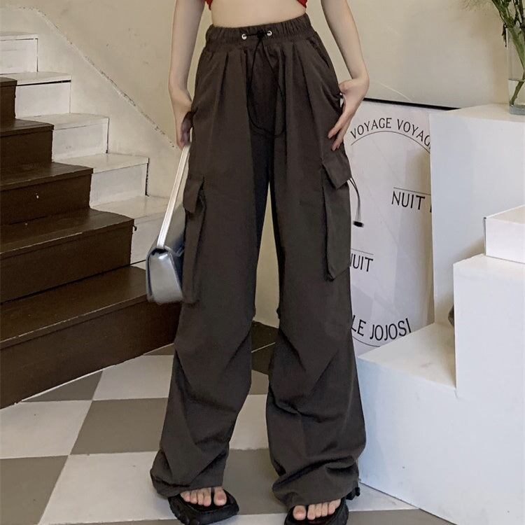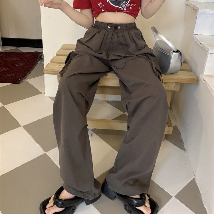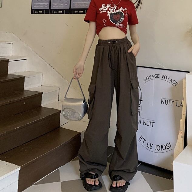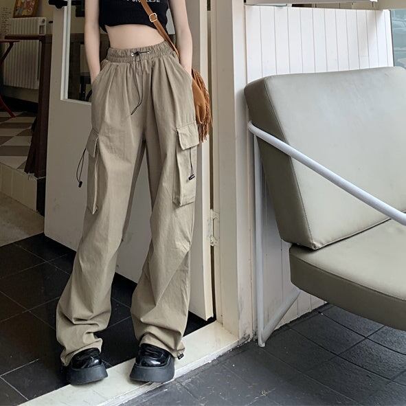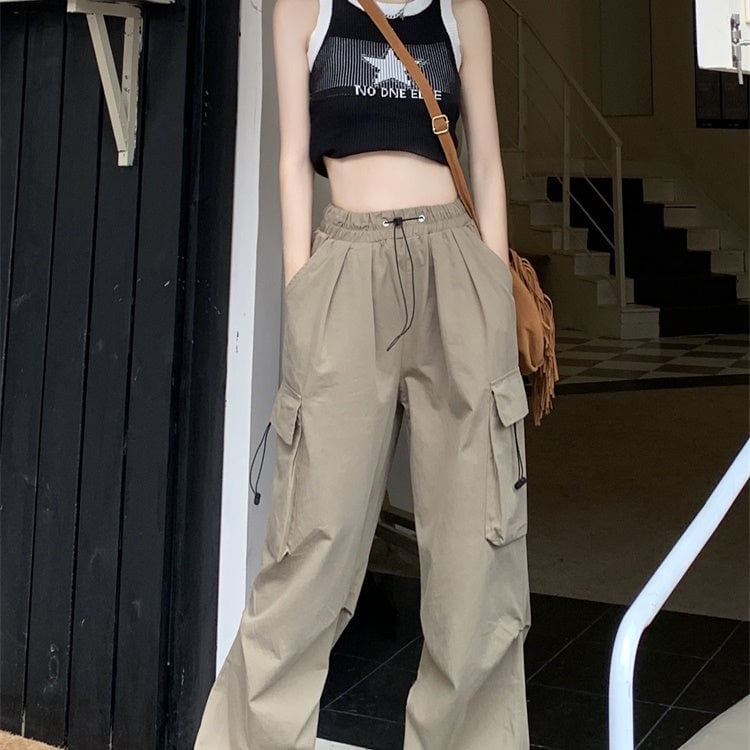 カーゴパンツ レディース 韓国 裾絞り ナイロン カーゴ ワイドパンツ サイドポケット 夏パンツ
